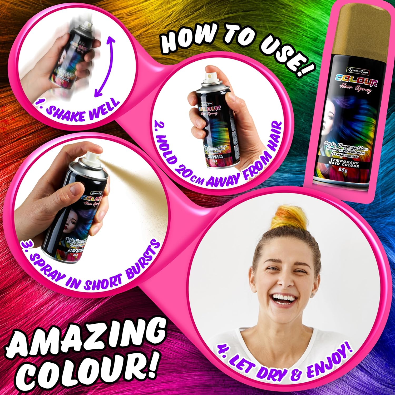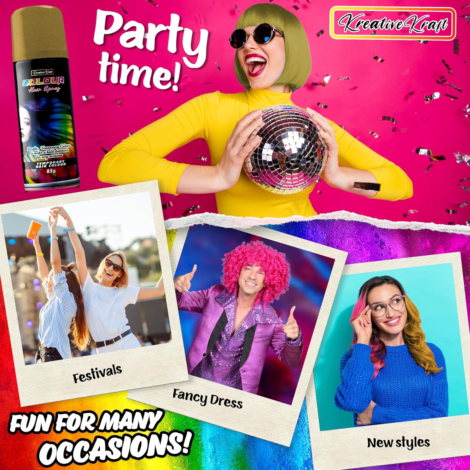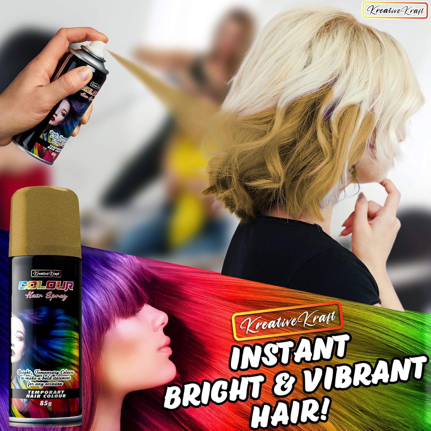 KreativeKraft Temporary Colour Hair Spray, Wash Out Hair Colour for Adults and Teens (Gold)