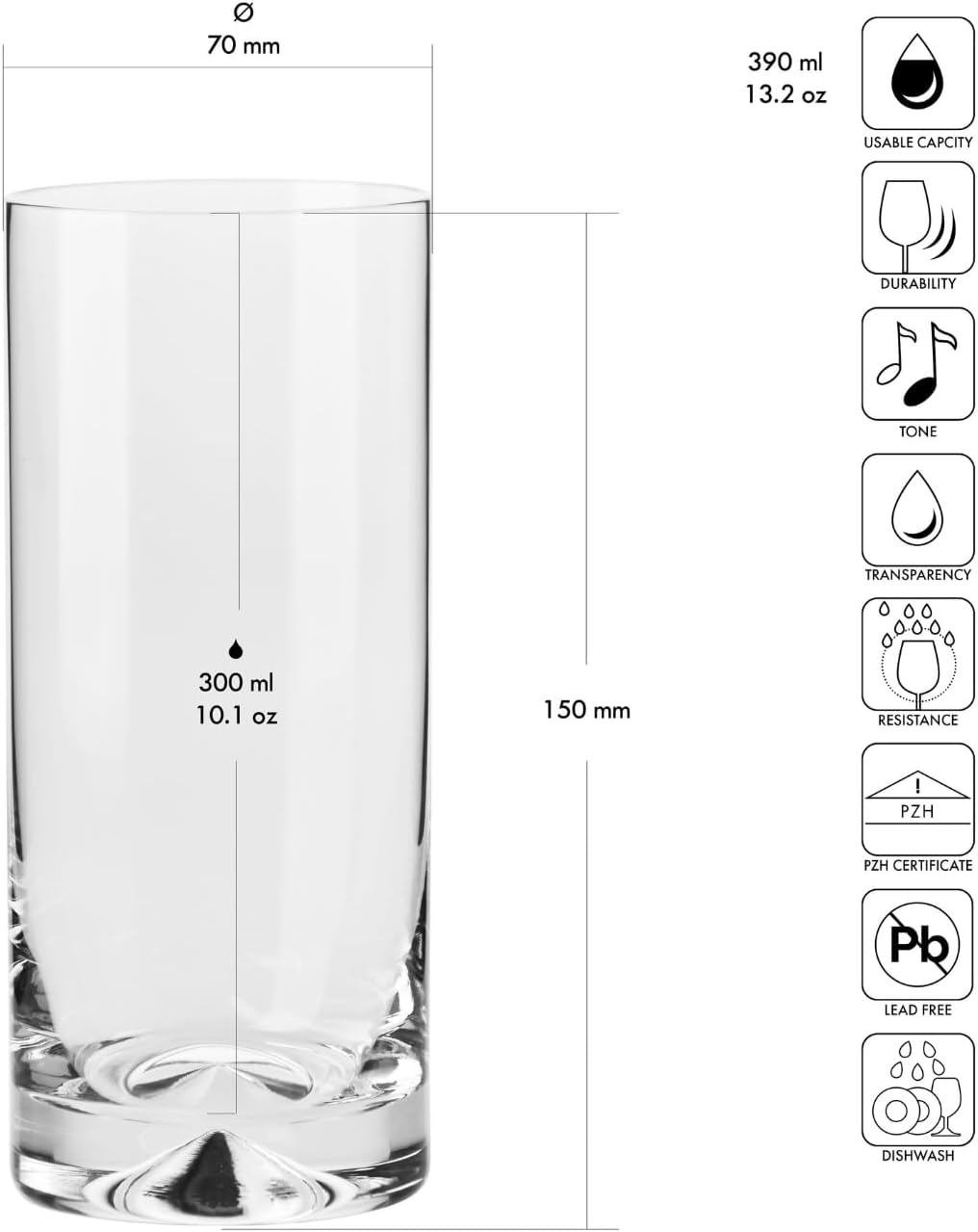 SET OF 6 GLASSES – Water, drinks and other cold beverages served in tall long-drink glasses will not only gain elegance, but will also perfectly complement any table, regardless of its arrangement and other tableware.