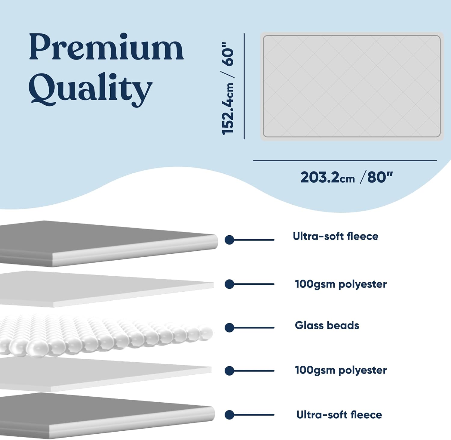 Micro glass bead filling – Anti-rustle, glass micro sand beads encased in double-stitched pockets silently mould in a large blanket to your body’s shape like the ultimate sensory hug and anxiety relief.