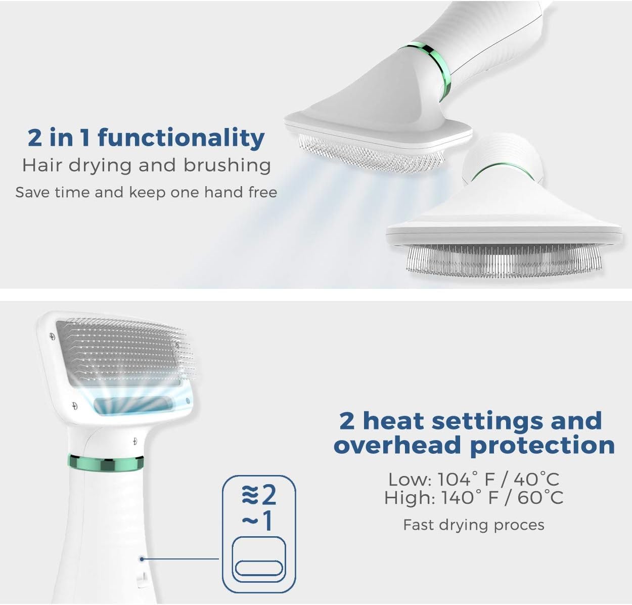 DRYER & BRUSH IN ONE: Dry, brush and groom your pet in one smooth motion with this multi-functional 2-in-1 pet grooming dryer. Perfect grooming dryer accessories for dog and cat lovers, professional groomers, stylists and salon owners and ideal to use after a wash or a bath. Now you can easily remove matted hair and tangles from your pet’s furry coat while drying.