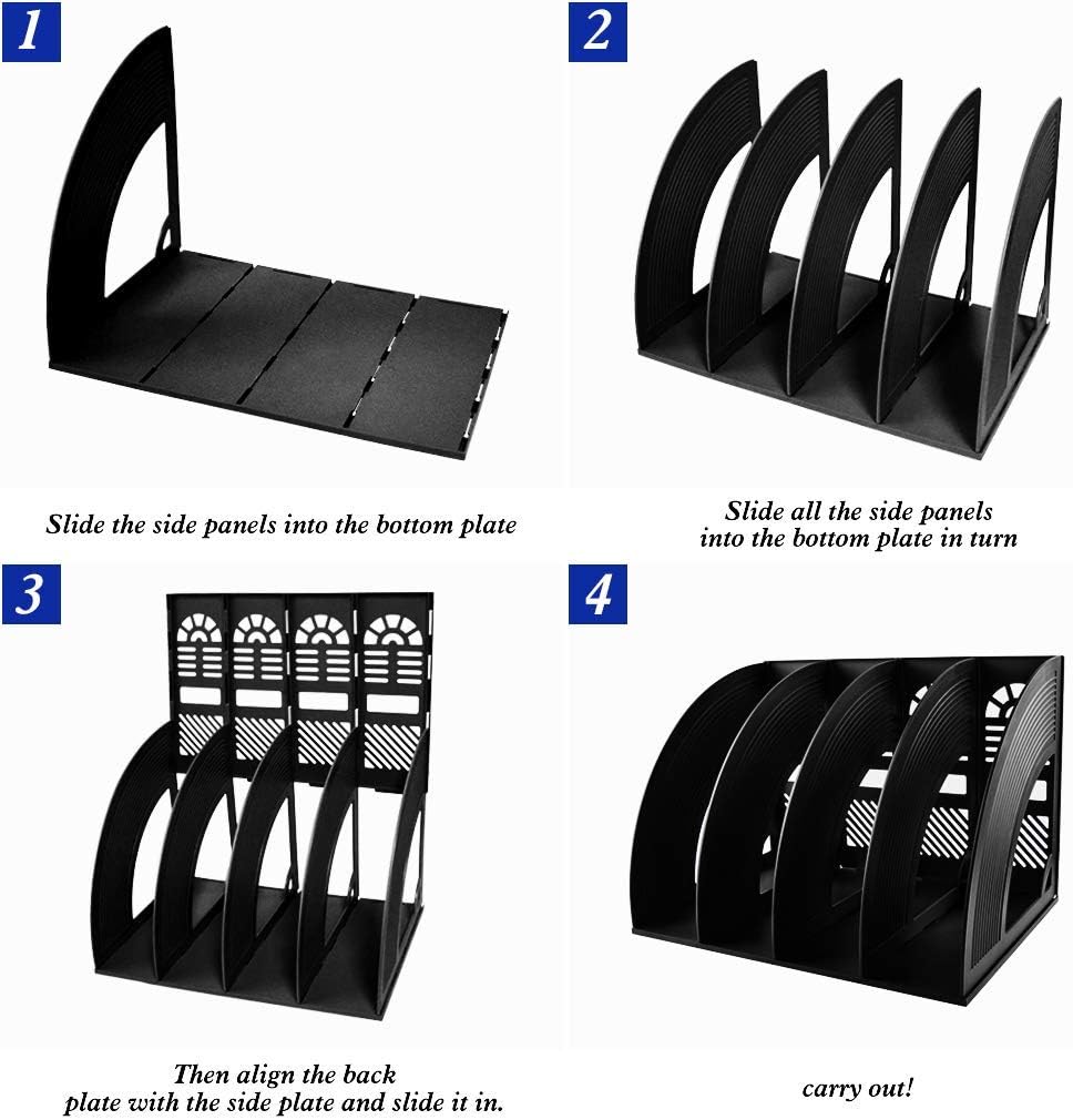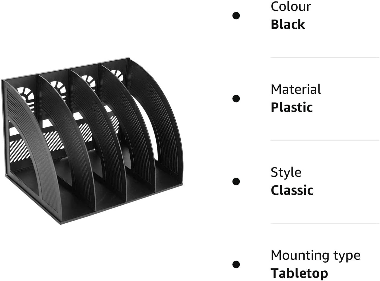 KXF Arched File Organiser Desktop File Organizer for A4 Documents File Holder Office Desk Storage Kitchen Organiser Plastic File Rack Dividers 4 Compartments File Frame Cabinet For Home School