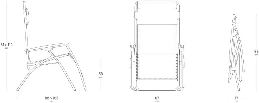 Contents: 1 x LAFUMA MOBILIER RT2 Recliner, Material: Texplast, Dimensions when open (HxWxD): 114x68x87 cm, Dimensions when closed (HxWxD): 99x68x17 cm, Weight: 6.6 kg, Colour: Châtaigne, LFM4027-9147