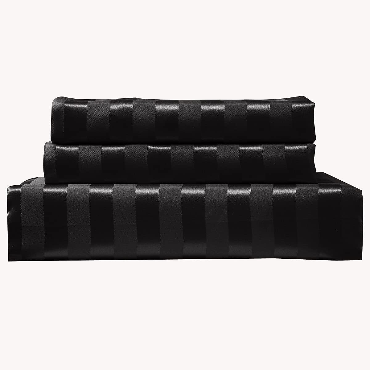 Lanqinglv Double Duvet Cover Set Black Stripes Satin Luxury Bedding Set Solid Color Shiny Silky Soft Reversible Quilt Cover 200×200 cm with 2 Pillowcases 50×75 cm