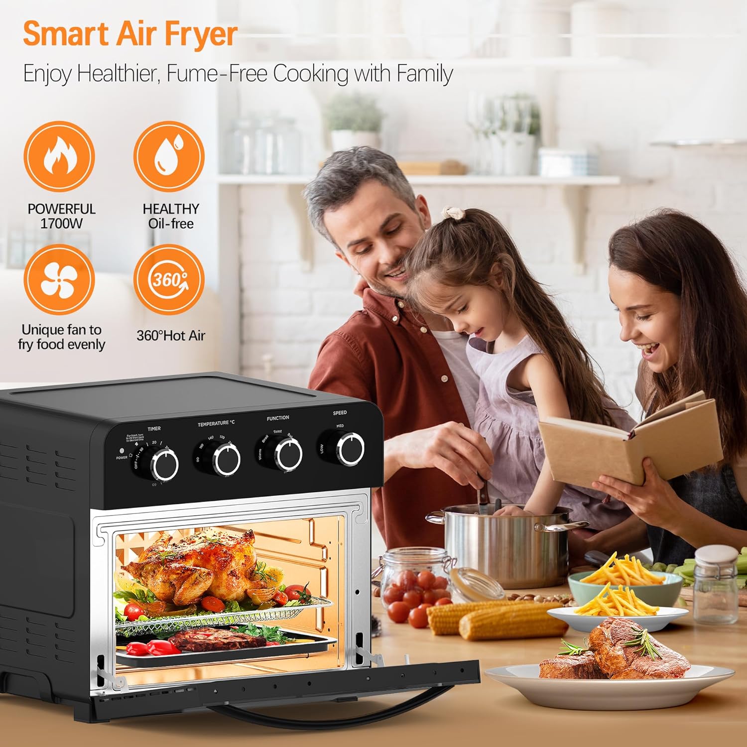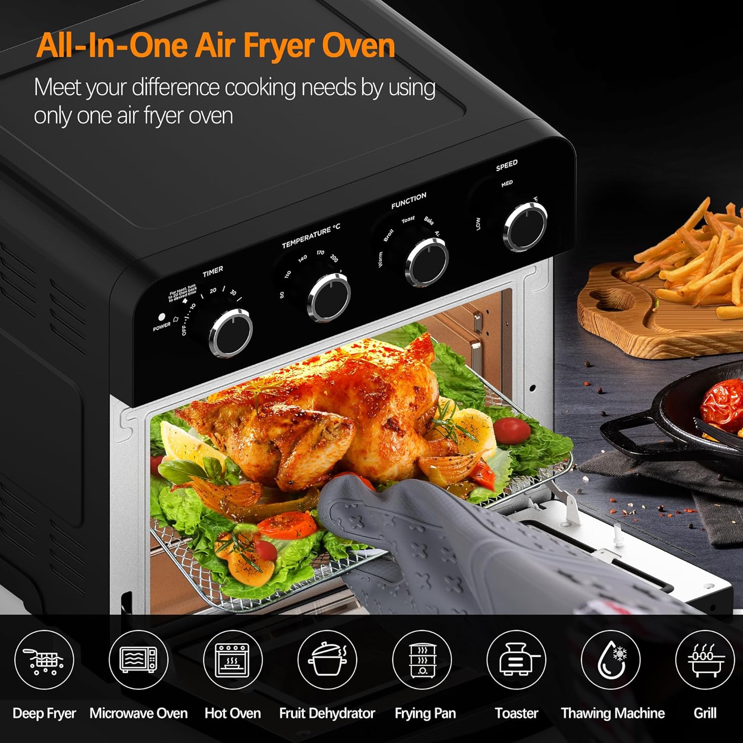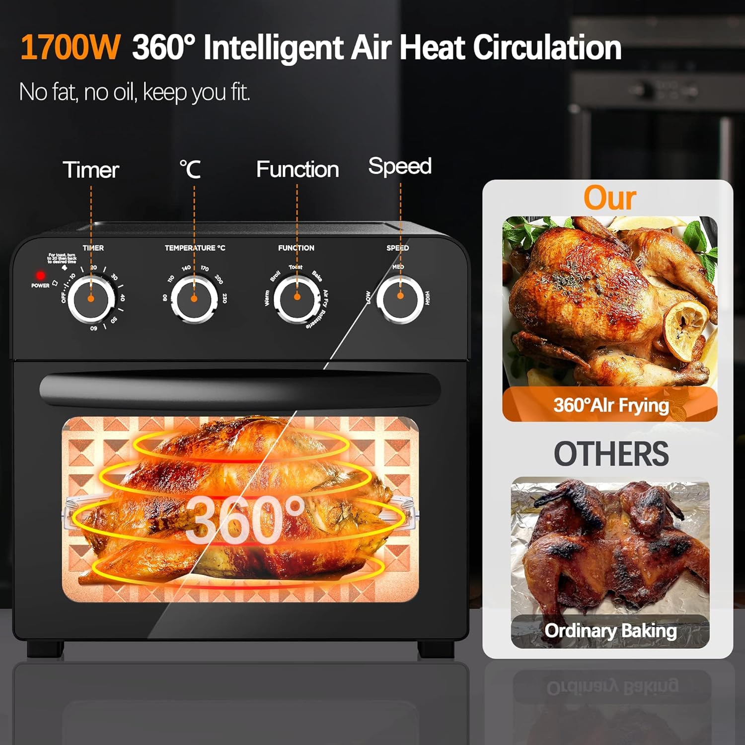 Large Air Fryer Oven 23L Multi-function Mini Oven, Countertop Convection Oven with Rotisserie, airfryer with 4 Knobs Easy to Operation, Oil-Less Cooking, 6 Accessories with 100 Recipess, 1700W