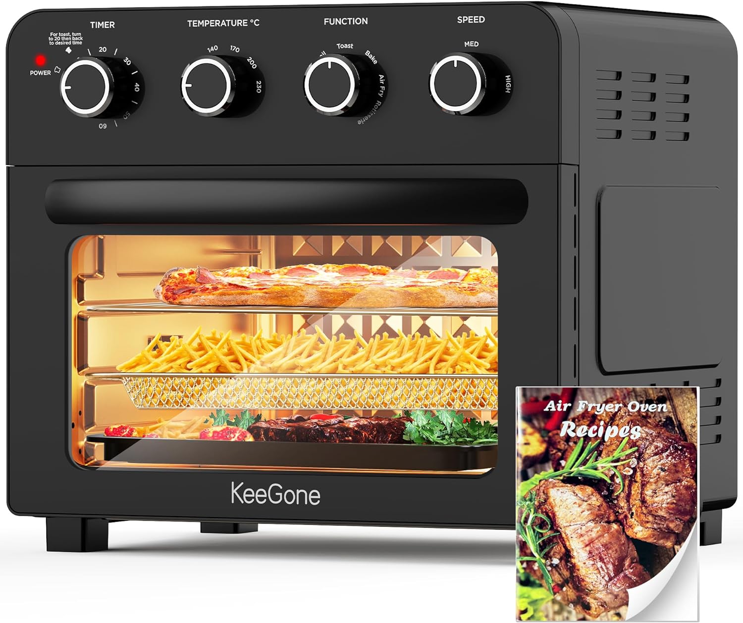 Air Fryer Oven This air fryer oven lets you create delicious meals and snacks with ease 360° High Speed Hot Air Circulation Designed with circulating heating function, the hot air circulates 360° inside the air fryer oven under the rotation of the top fan to heat evenly Non-Stick Coated Inner Wal Can be easily cleaned by wiping with a towel with detergent, which is more durable and not easy to rust Smart Timer All desired functions can be set with one knob. Mechanical knobs are more durable and easy to use, even for the elderly. KeeGone Air Fryer Oven can replace air fryers and regular countertop ovens. It dehydrates, grills, air fries, bakes, broils, toasts and reheats. All your favorite foods can be cooked with one machine. 【KeeGone Air Frying Technology 】Exclusive to the air fryer, KeeGone high-speed air circulation technology rapidly circulates hot air around food, cooking up to 30% faster than a conventional oven. The KeeGone Air Fryer Oven is Ideal for any home, it can perfect alternative to air fryer , oven, dehydrator, toaster oven, etc., one machine is multi-purpose, saving money, time and worry. Customers like the air fryer for its performance, appearance and capacity. They mention that it’s a great product that cooks food in half the time of a conventional oven. They also appreciate the quality and performance. They say that it is a nice looking appliance and is big enough for a family. Customers also like the ease of cleaning, ease of use, and taste. AI-generated from the text of customer reviews
