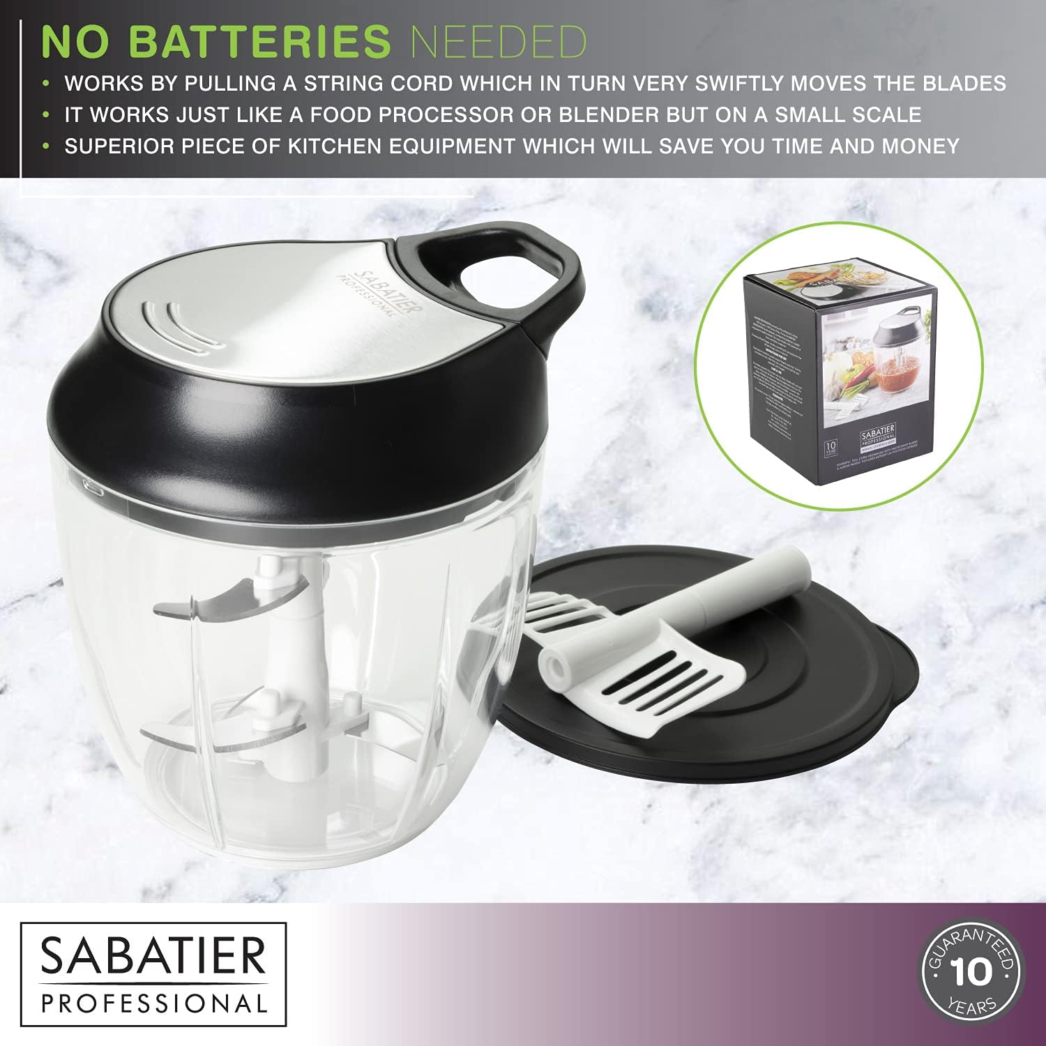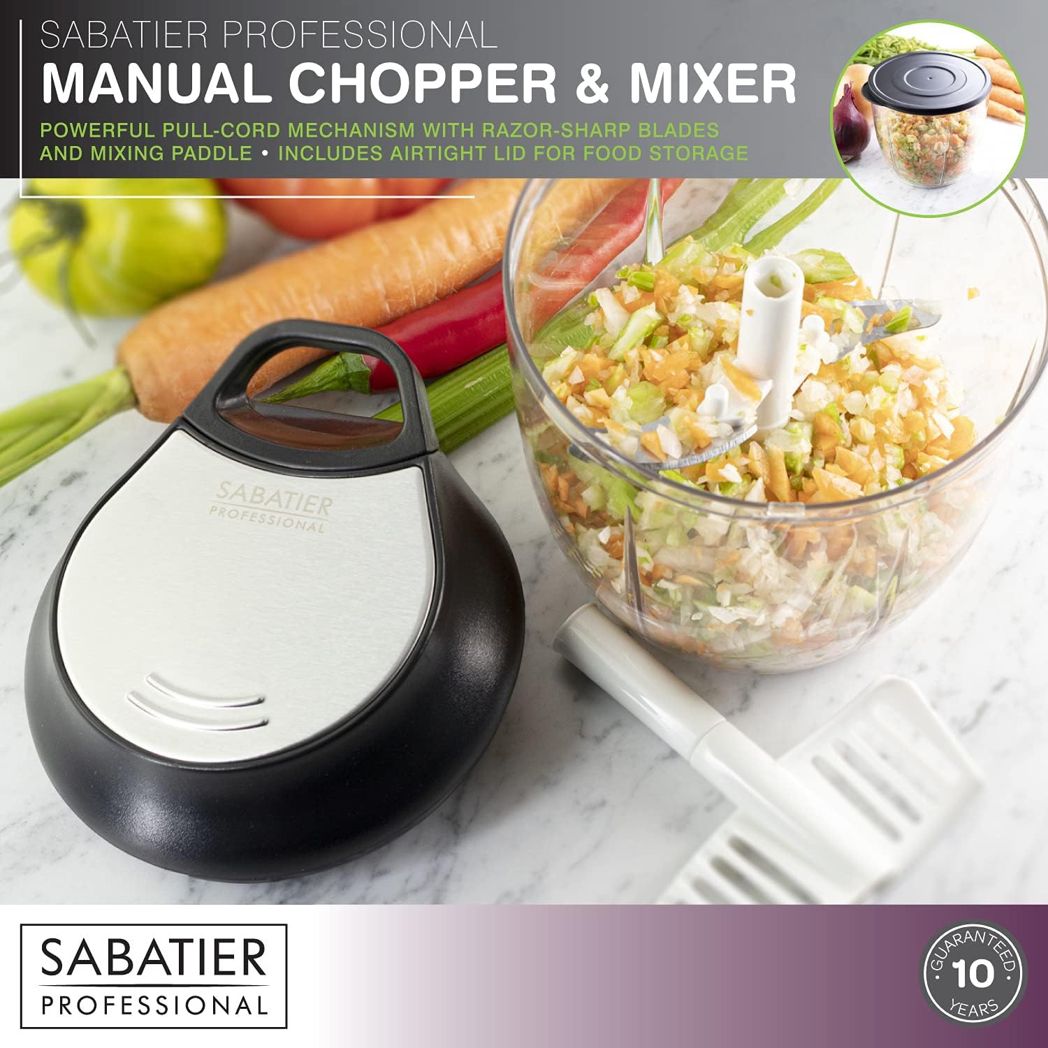 Large Manual Hand Food Chopper – Sabatier Professional Nut, Fruit and Vegetable Processor, Slicer, Cutter And Dicer. Pull String, Stainless Steel removable Blades, Lid, BPA-Free. Dishwasher Safe