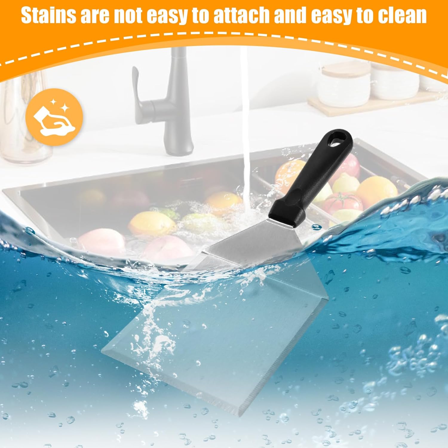 【High-quality stainless steel】 The flat spatula stainless steel is made of high-quality stainless steel, not easy to deform, rustproof, and stain resistant. Griddle spatula blade thickness is 1.5mm, which makes them strong so it is not easy to bend, and durable for use.