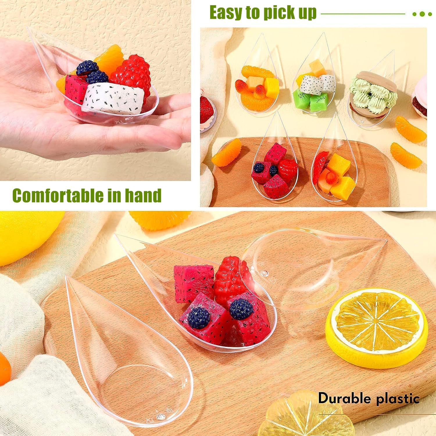 – The plates is transparent and modern tear drop design, perfect for displaying delicious appetizers, snacks, sauces, etc.