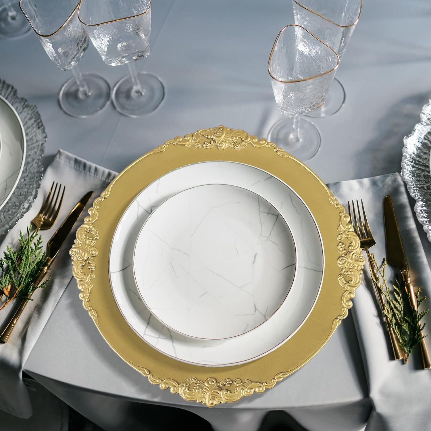 – Gold plated surface with embossed rim can add an luxurious modern twist to party, to throw an elegant party and let family experience fine dining.