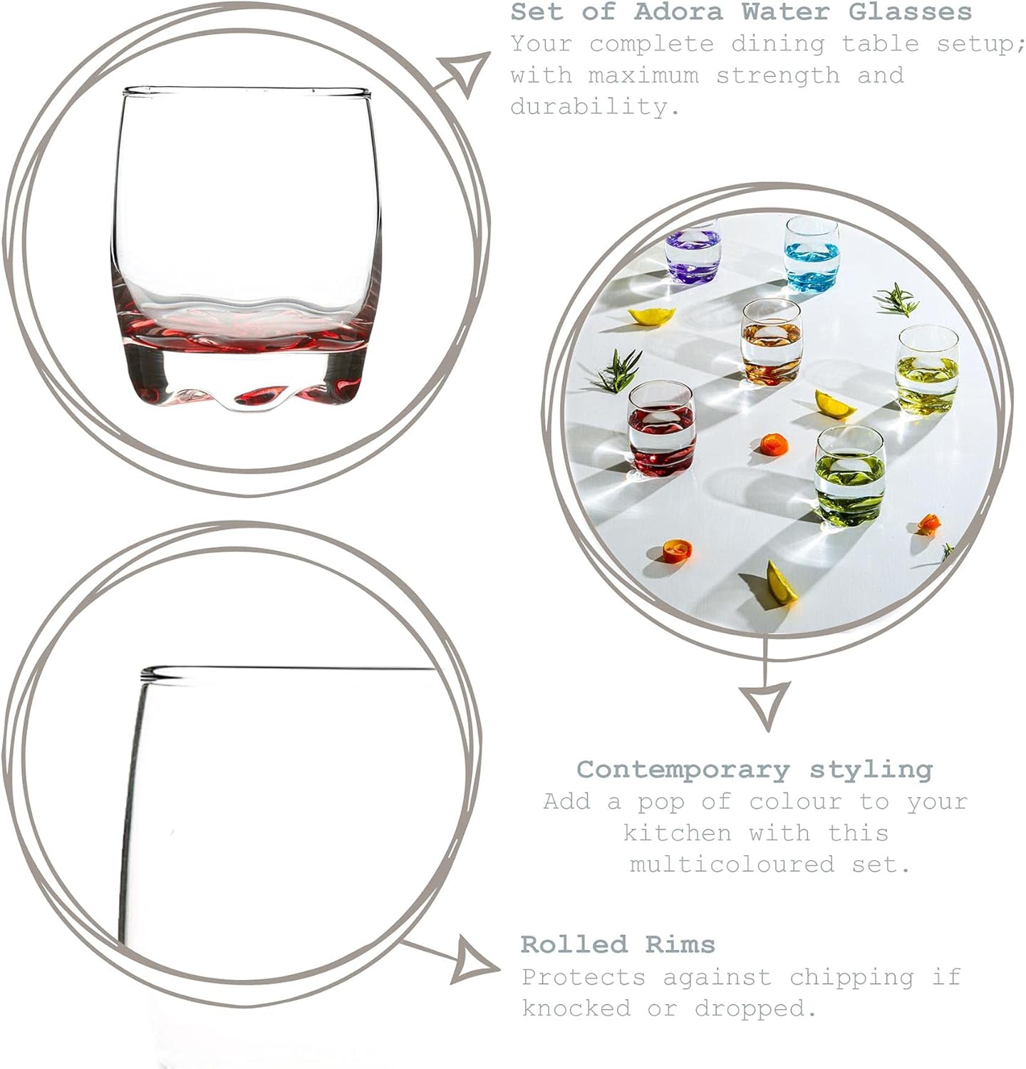 LAV 12x Multicolour 290ml Adora Tumbler Glasses – Stemless Kitchen Water Whiskey Wine Gin Juice Cocktail Drinking Glass Set