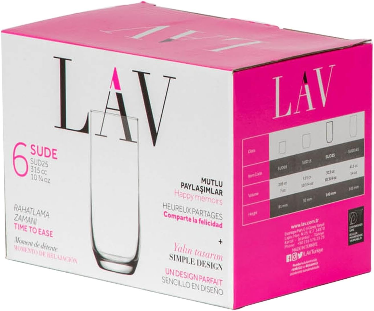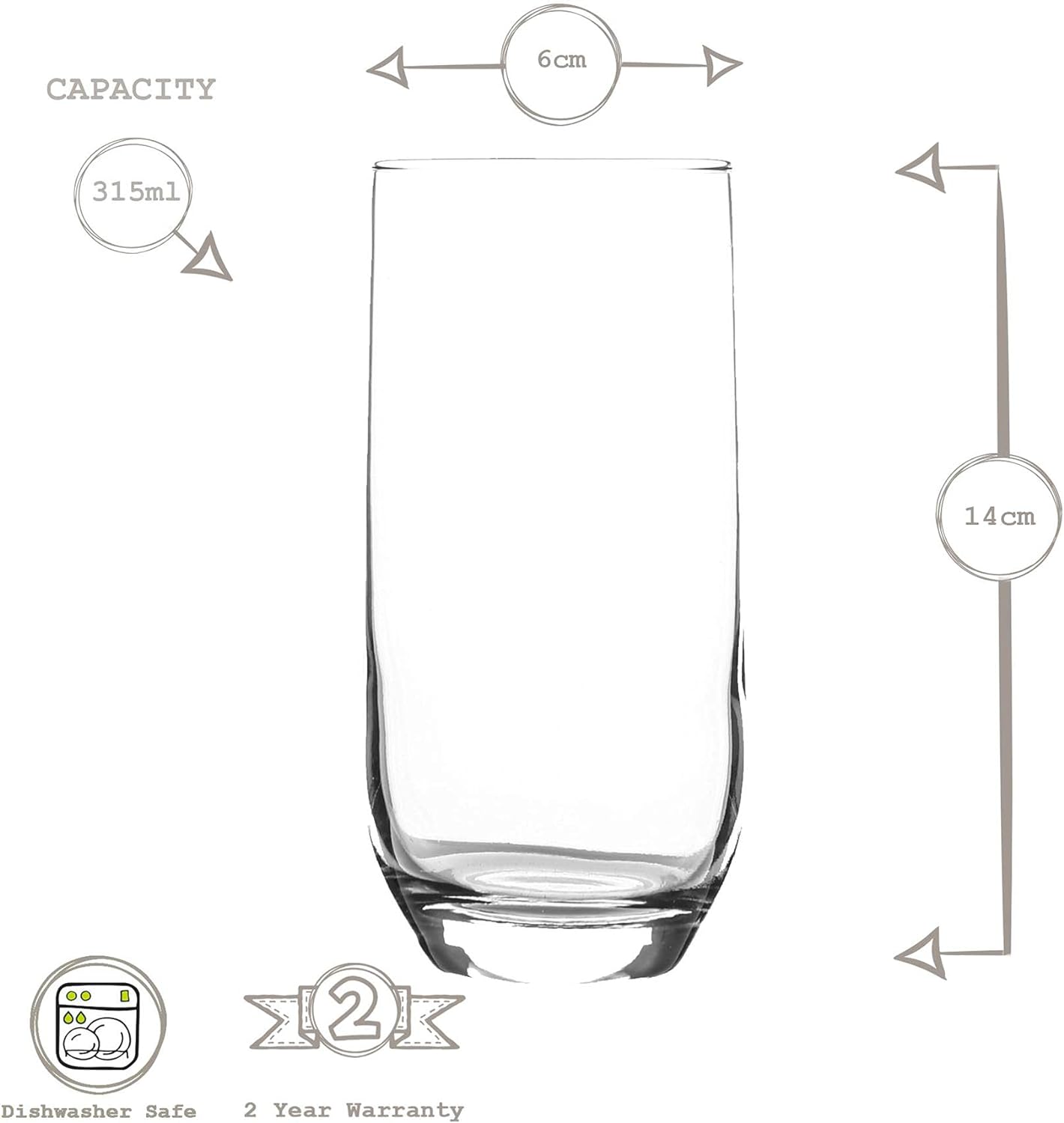 Lav Highball Tumbler Drinking Glasses Set. Pack of 6 Water Juice Tableware Glass, 315ml