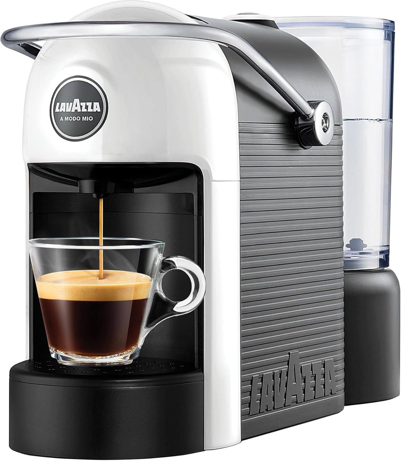 Lavazza, A Modo Mio Jolie, Coffee Capsule Machine, Compatible with A Modo Mio Coffee Pods, Quiet, with Removable Cup Rest, Automatic Shut-Off, Washable Components, 1250 W, 220–240 V, 50–60 Hz, White