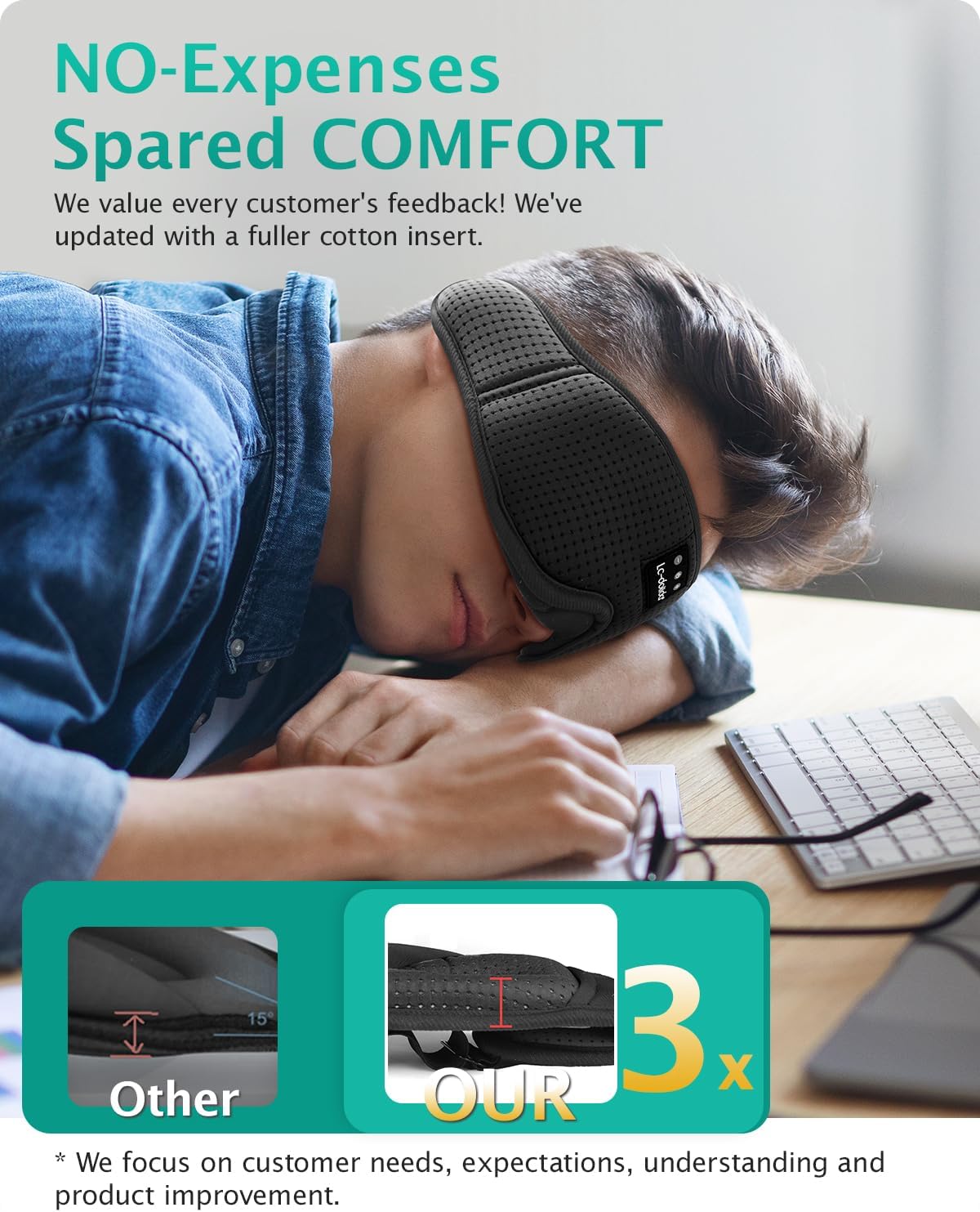 ⏰[ Bluetooth Sleep Mask,Provides 14 Hours of Playing Time ] – LCdolida Sleep Mask has built-in Bluetooth technology and updatedspeakers, which can bring HD stereo with excellent sound quality. Playyour favorite audiobook, podcasts, soothing music, nature sounds, whitenoises, or guided meditations. Sleep Anywhere Anytime with LC-dolida Sleep Mask Blackout.