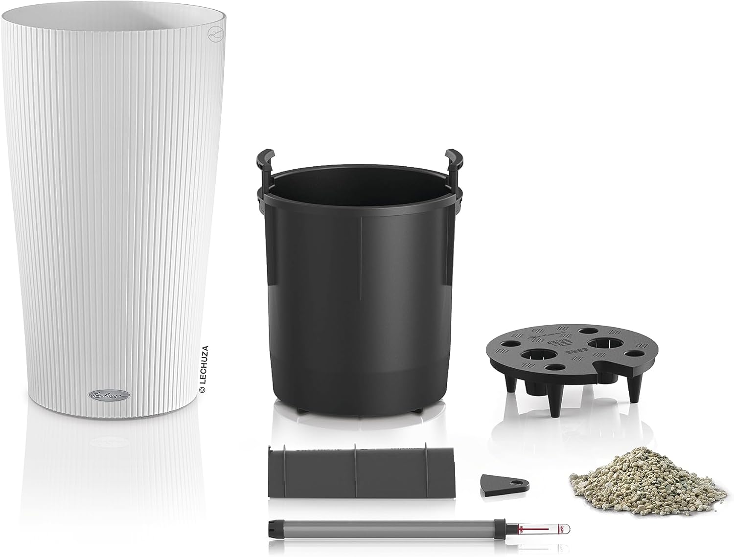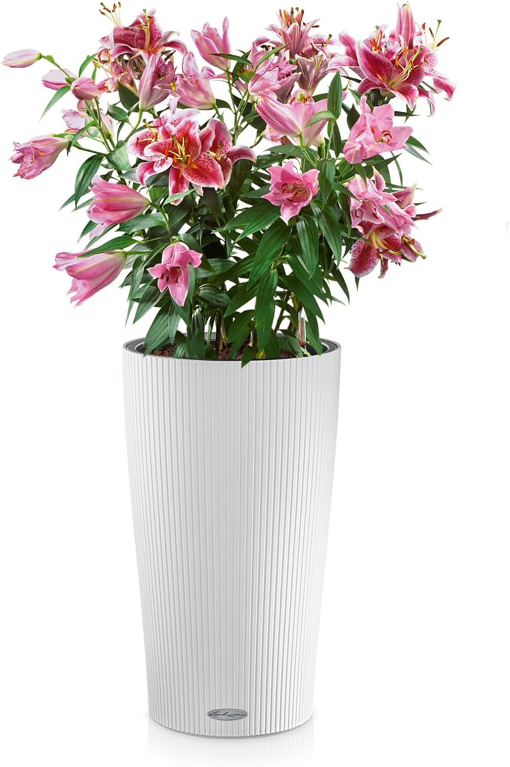 Lechuza CILINDRO Color 32 Self Watering Planter Garden Flower Plant Pot Plastic Indoor/Outdoor Floor Planter with Drainage Hole D32 H56 cm White