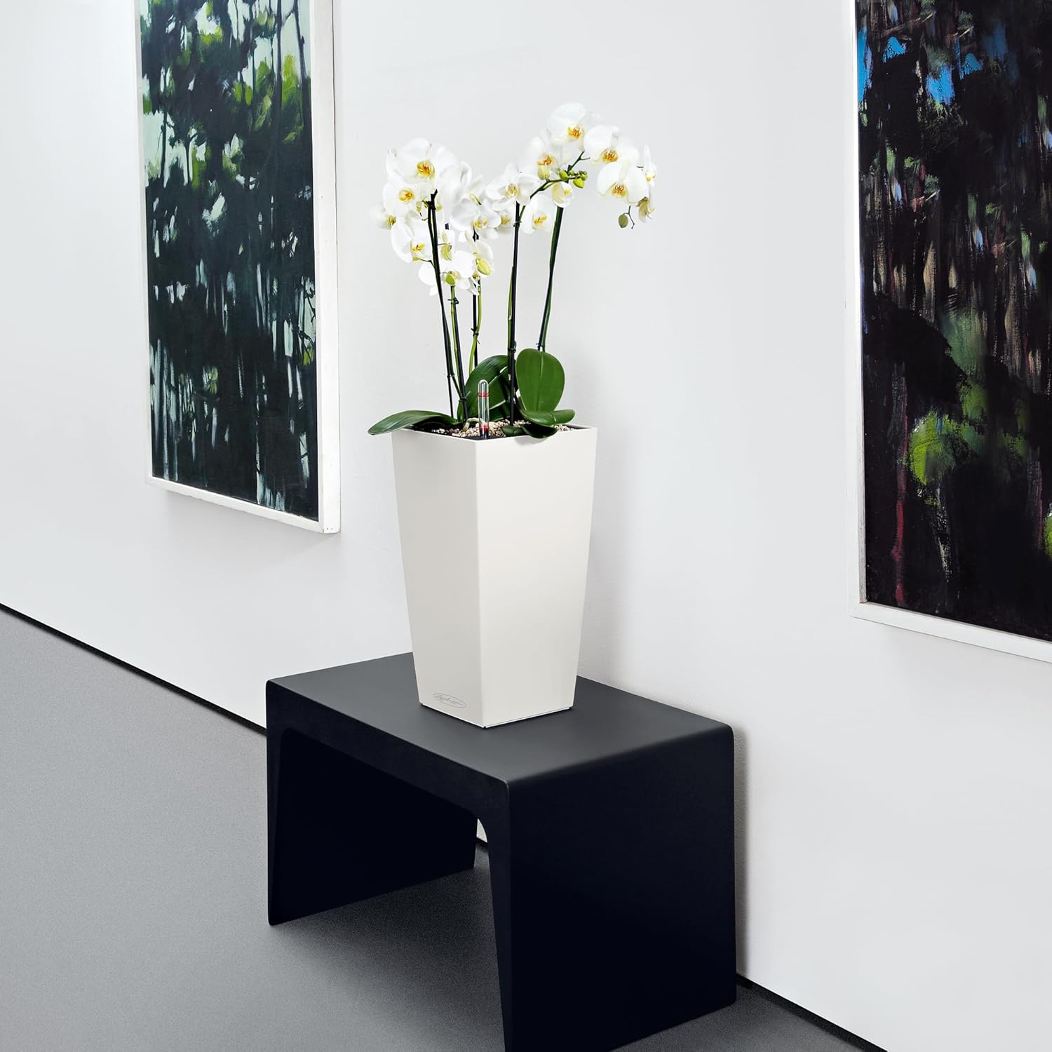 Lechuza CUBICO Color 22 Self Watering Planter Garden Flower Plant Pot Plastic Indoor/Outdoor Table Planter with Drainage Hole H41 L22 W22 cm White