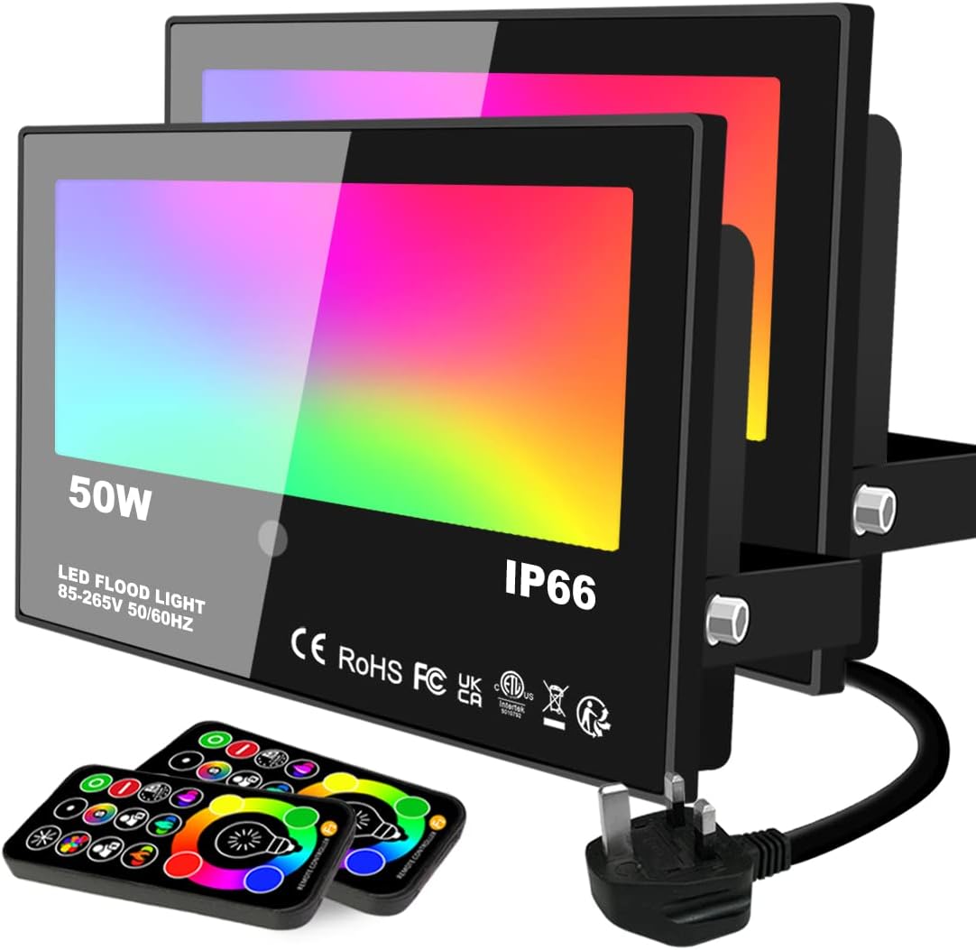 Be the first to review “LED Floodlight Outdoor 50W 5000LM, Colour Changing Flood Lights, RGB 120 Colours and Warm White, Timing Remote Control,IP66 Waterproof, UK3-Plug (2 Pack)”