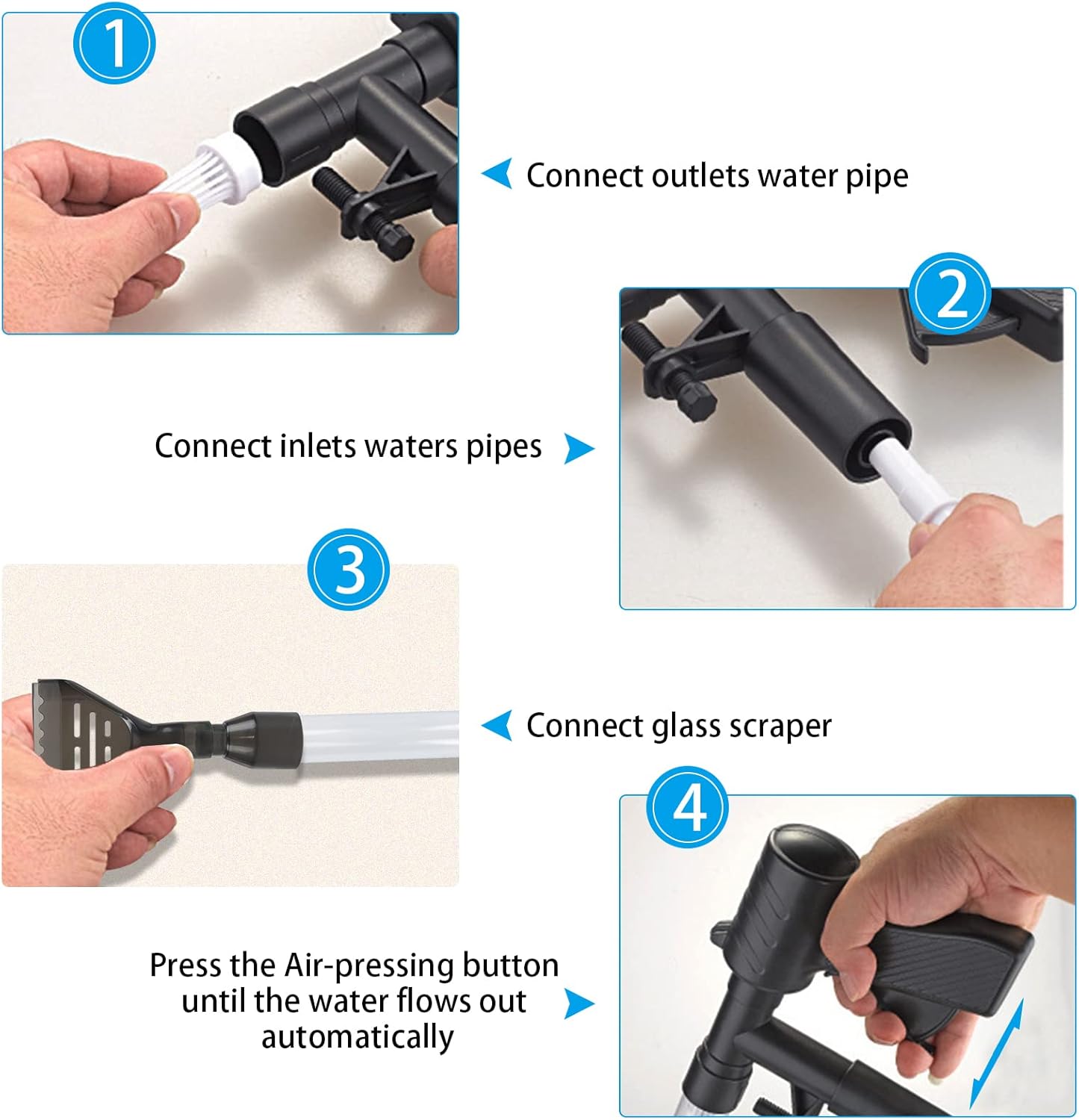 【Special Design】Manual air-pressing. Aquarium cleaner adopts an air-pressing button with humanized design to control water flow. The upgraded handle is easy to press, the comfortable grip makes it saves labour and pumps water quickly. You can easily operate with a single hand and adjust suction to clean different places according to different needs.