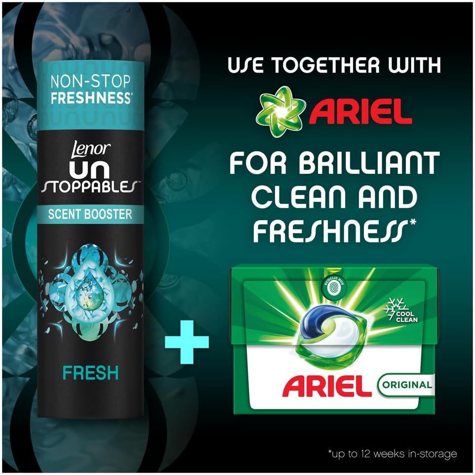 (as of [price_update_date] – DetailsDiscover Lenor Unstoppables in wash scent booster, formulated with long lasting freshness technology, to provide your laundry with a boost of non stop freshness up to 12 weeks in storage. Lenor scent experts recommend Unstoppables Fresh if you are looking for a sparkling citrus and juicy fruits scent wrapped into transparent floral notes. Available in different scents, each Lenor Unstoppables fragrance injects freshness into every wash. Add it to every wash on top of your usual laundry routine.
