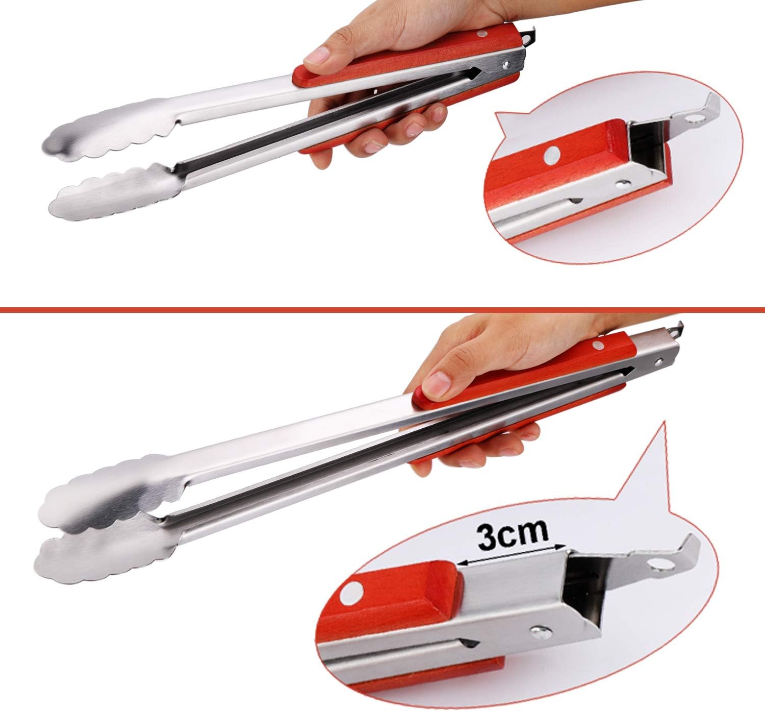 Lock to Store and Easy to Clean: Use the Lock and Hook feature to keep your tongs for grilling neat and compact. Dishwasher safe. Or just easily wipe off your barbecue tongs after use to keep them clean and ready for next time.