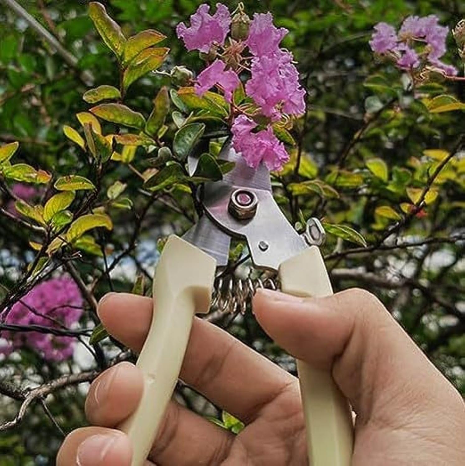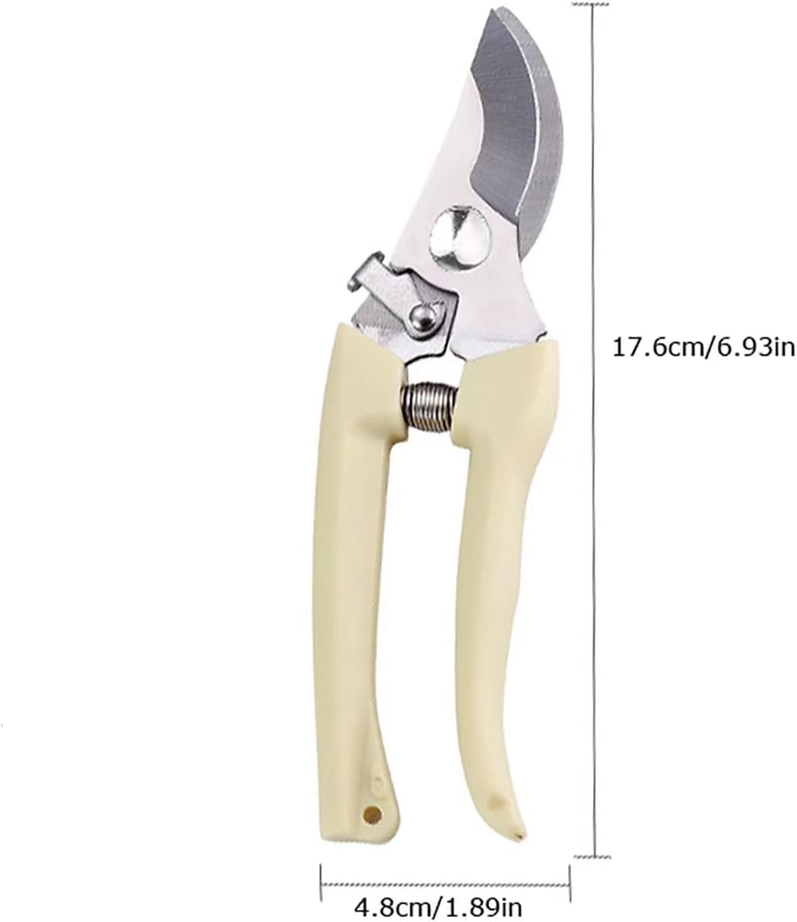 No-Slip Handle: The ivory plastic handles of the gardening secateurs feature a no-slip design, providing a secure and comfortable grip. This prevents hand fatigue during extended use and ensure precise shearing with maximum control.