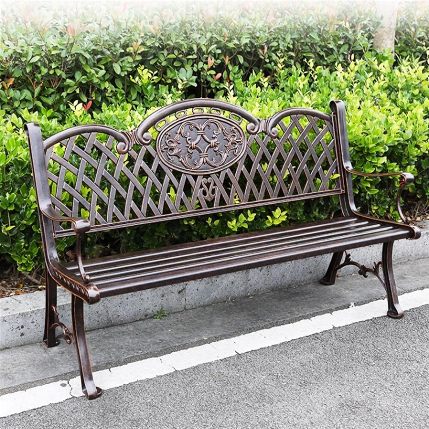 LIERSLP outdoor benches 59.0″ Outdoor Patio Bench with Backrest and Armrest, Cast Aluminum Metal Garden Bench, Park Outdoor Bench for Patio Porch Poolside Balcony seat cushions for outdoor benches