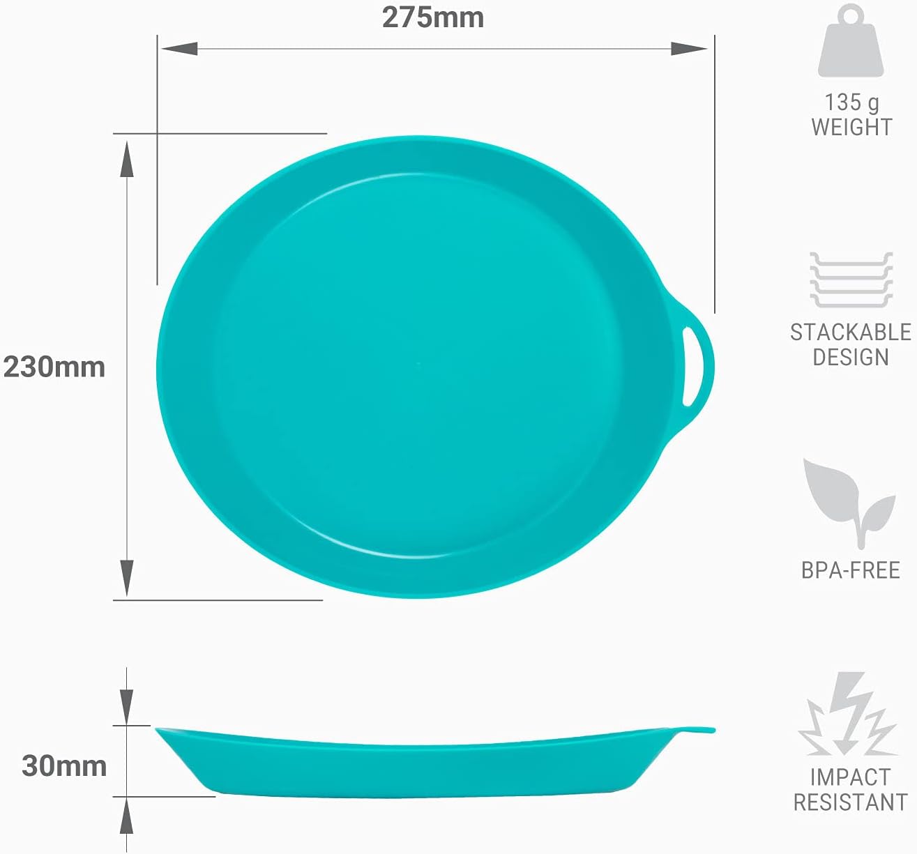 DIMENSIONS: Plate: 230 x 275 x 30 mm (Weight: 135 g) | Bowl: 145 x 175 x 70 mm (Weight: 70g) | Cutlery: 180 x 40 x 15 mm (Weight: 30) |300ml Mug: 95 x 110 x 80 mm (Weight: 75g)