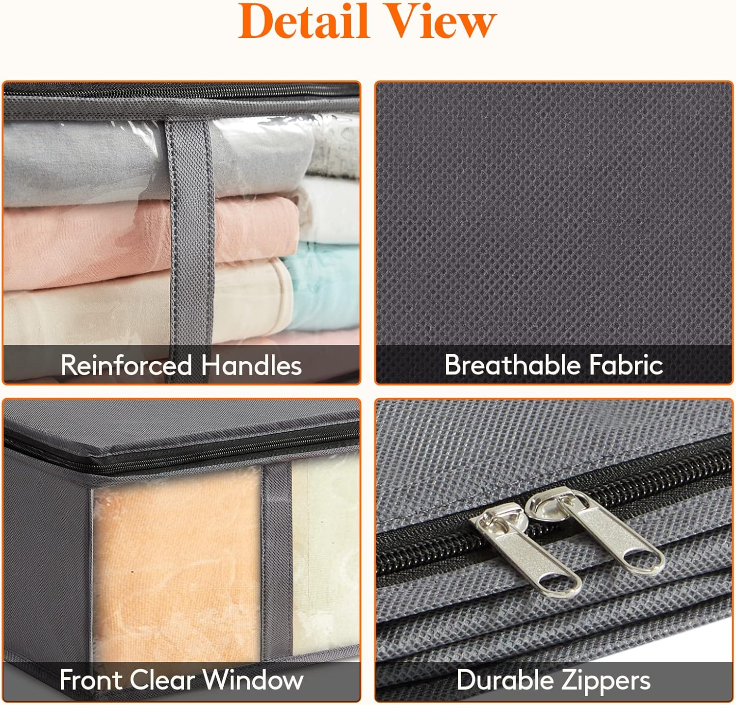 👍【See-Through Window】: The front clear window of these under bed storage bins provides excellent visibility, so you can quickly see what’s inside, saving you time without opening the zipper to rummage through. Wipe with a damp cloth when dirty.Customers say