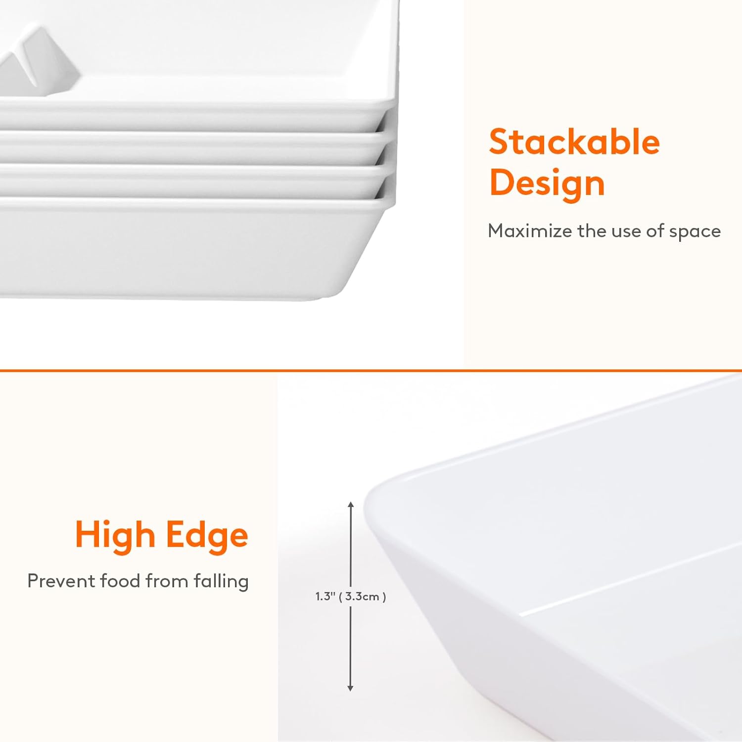 Lifewit Divided Serving Tray Platter Plastic, 4PCS White Reusable Trays for Food Eating, Tea/Drink/Snack/Dinner Serving Platters for Kichen, Bar, Restaurant, 38.1 x 25.4 cm