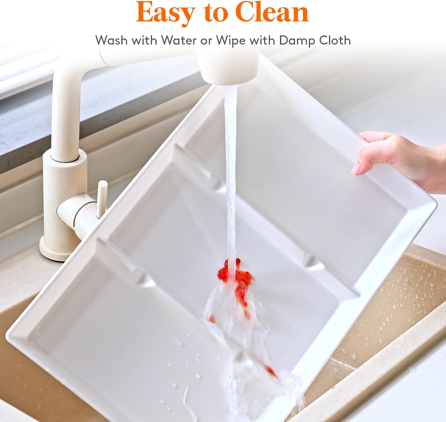 Easy to Clean: The inner surface of the food tray is smooth and easy to clean. You can hand wash it or simply wipe it with a damp cloth. Additionally, these kitchen trays are stackable, ensuring easy storage and keeping your storage space neat and tidy when not in use.