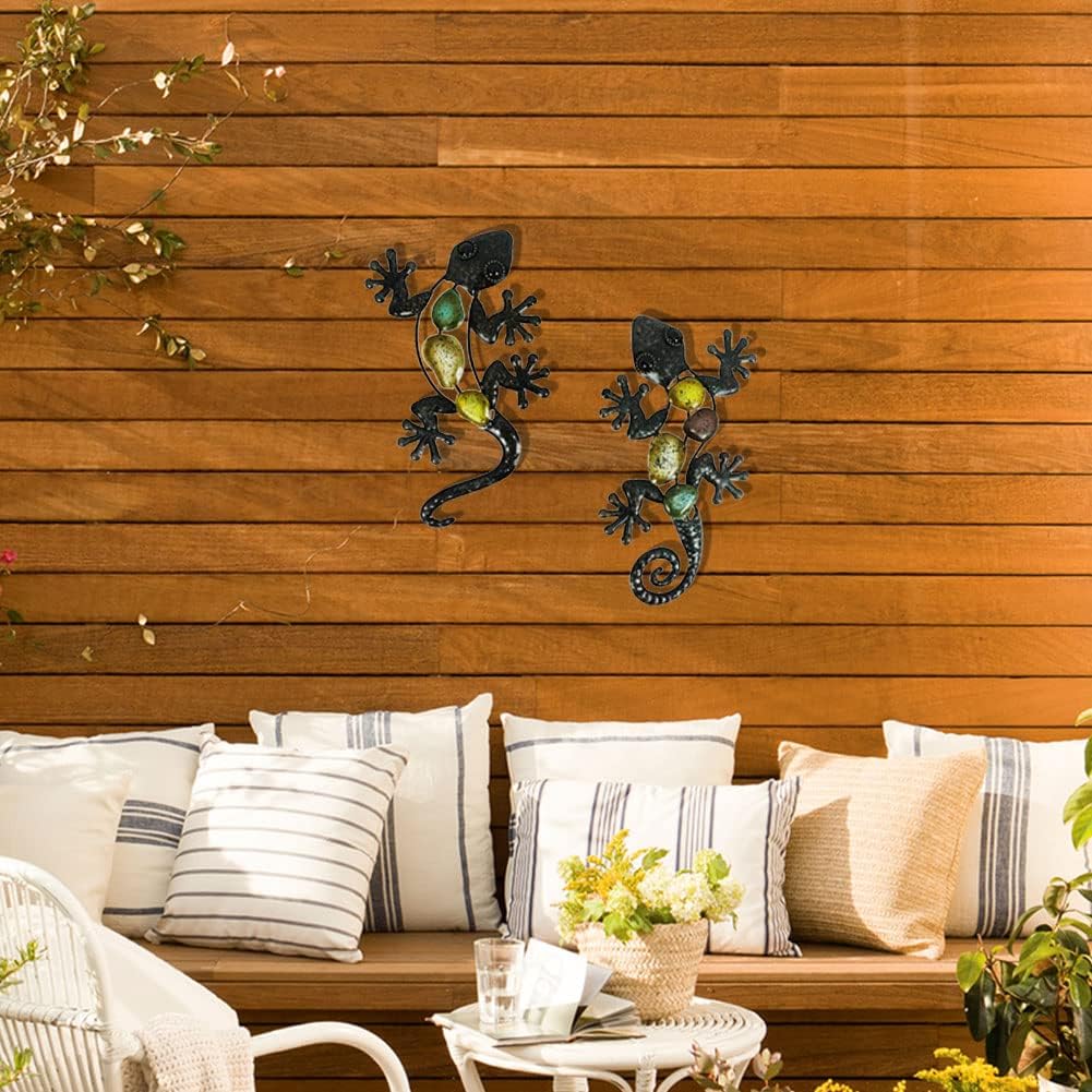 Liffy Metal Gecko Wall Decor Lizard Garden Art Hanging Outdoor Decorations for Patio or Fence, Set of 2