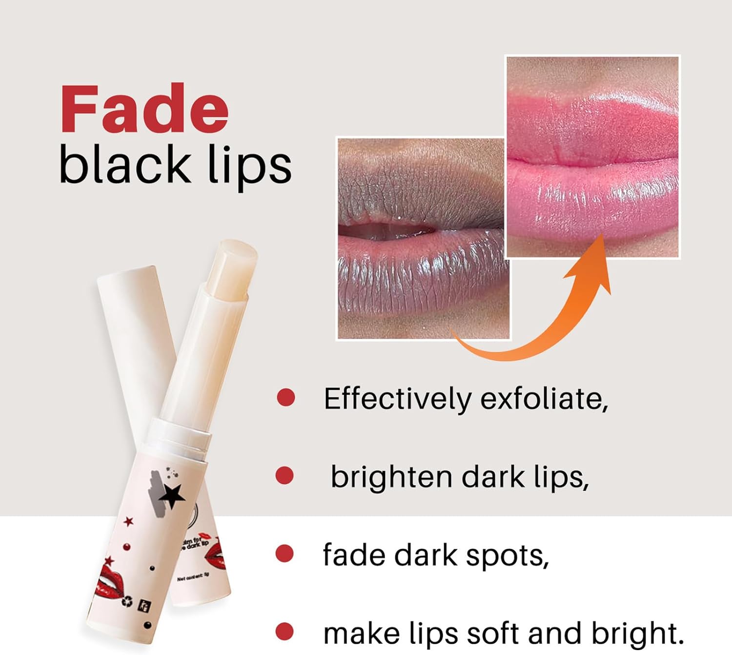 It effectively exfoliates , brightensdark lips,makes lips supple and soft lightens lip stains ,maintains lusciousplump lips, healsdry