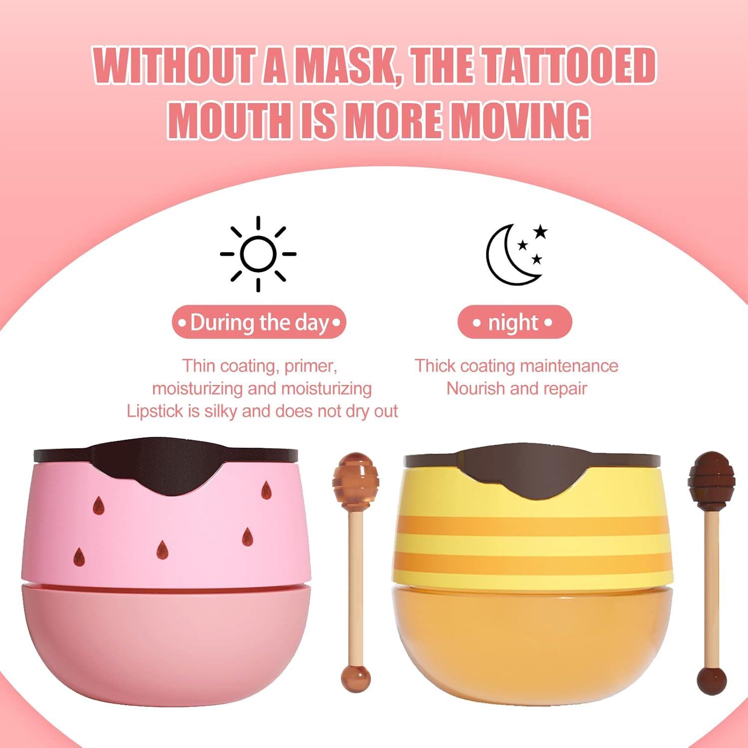 【Day&Night Repair】You can use the lip mask balm in the morning and evening to moisturize the lip skin. Apply a thin layer during the day to make your lip makeup full and three-dimensional. Apply upper lip mask before resting at night to repair and care for your skin.