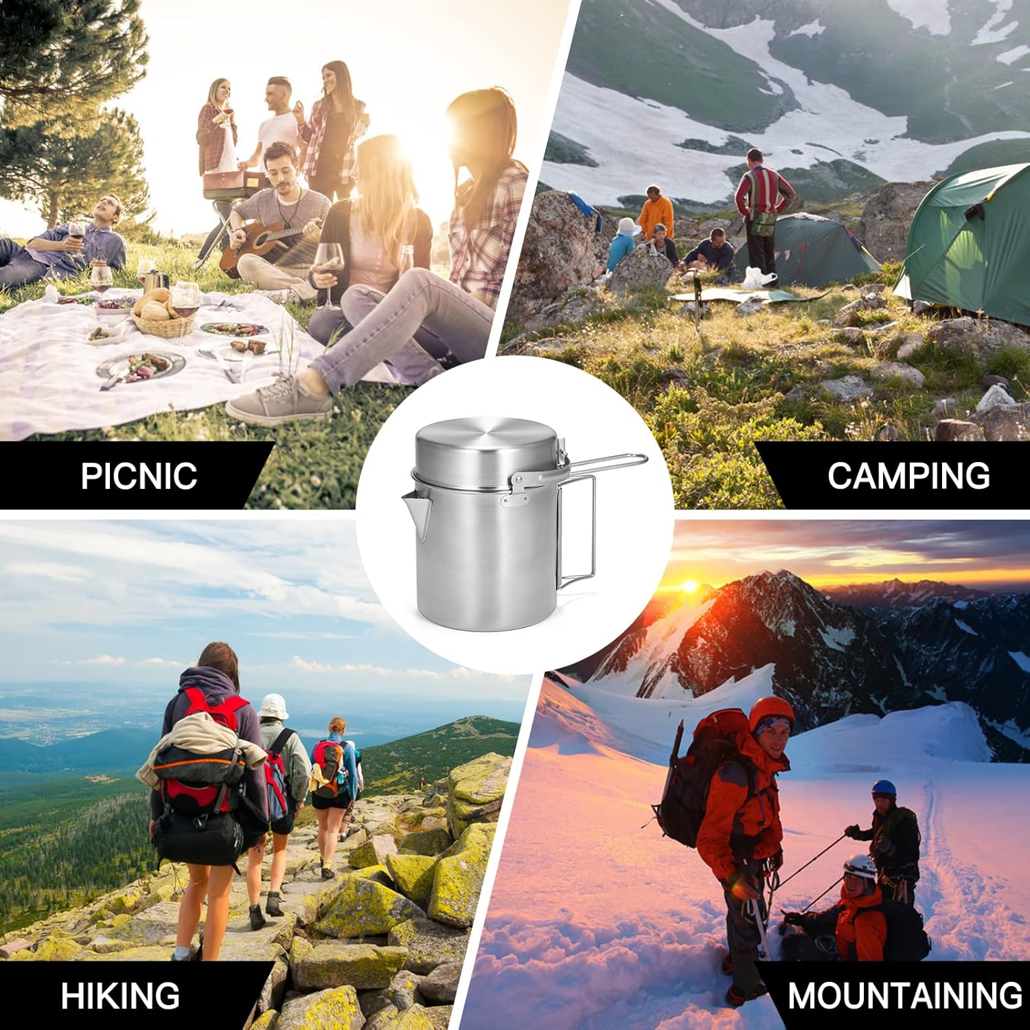 【Corrosion-resistance】This camping kettle is made of two parts and made of stainless steel which is corrosion-resistance.
