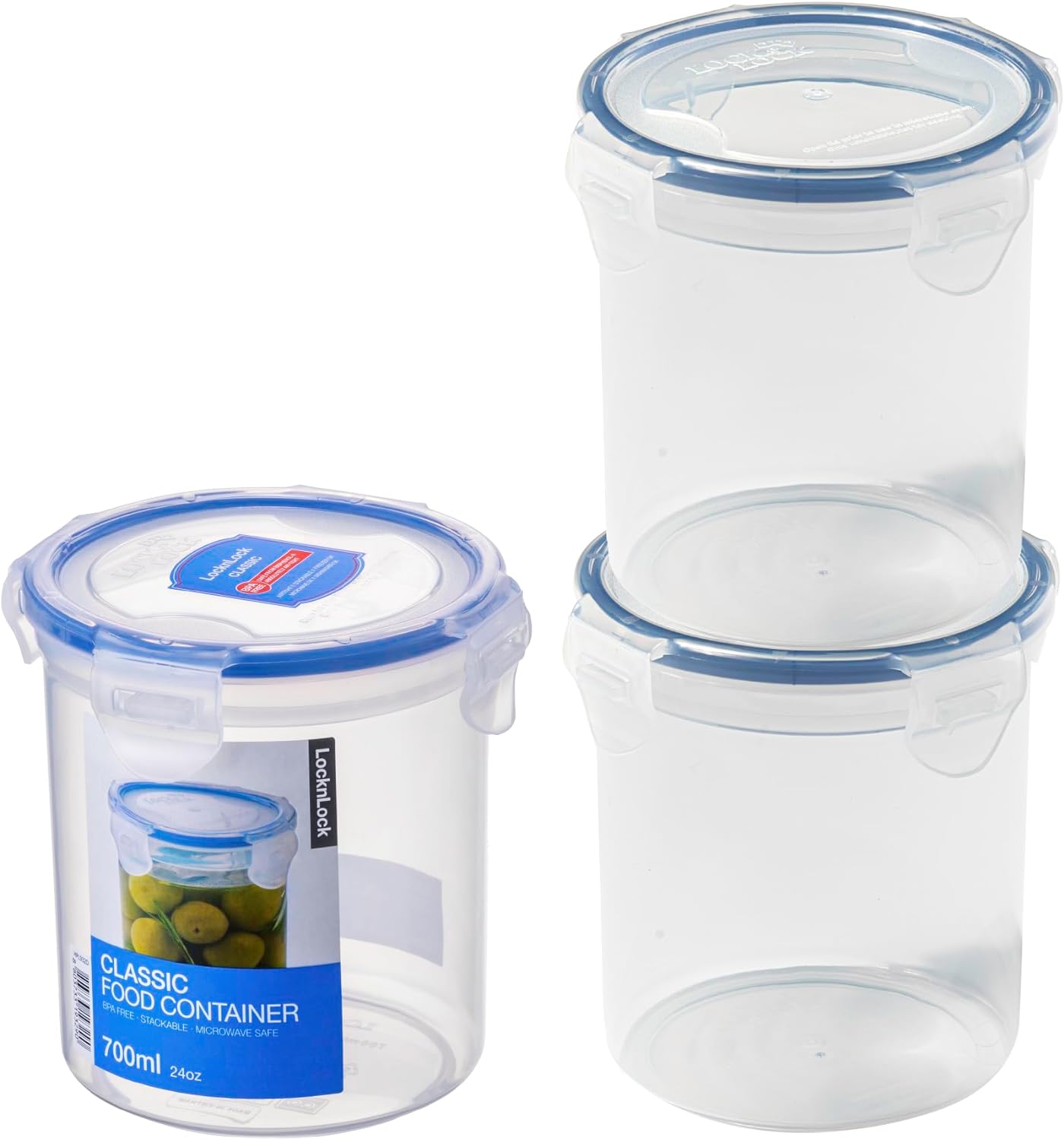 LocknLock Round Food Containers with Lids Set of 3 – Plastic Airtight & Watertight Food Storage Containers, BPA Free & Dishwasher Safe, 3 x 700ml