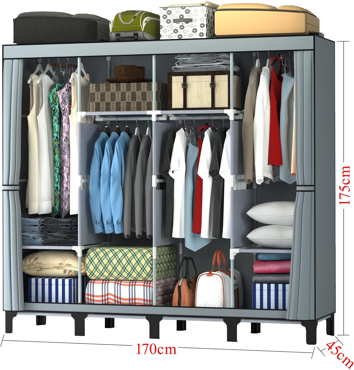 12 reviews for LOEFME Canvas Wardrobe, Four-column Portable Wardrobes for Bedroom, 165 * 45 * 175 cm New Base Design Fabric Wardrobe, Large Storage Space Foldable wardrobe, Grey