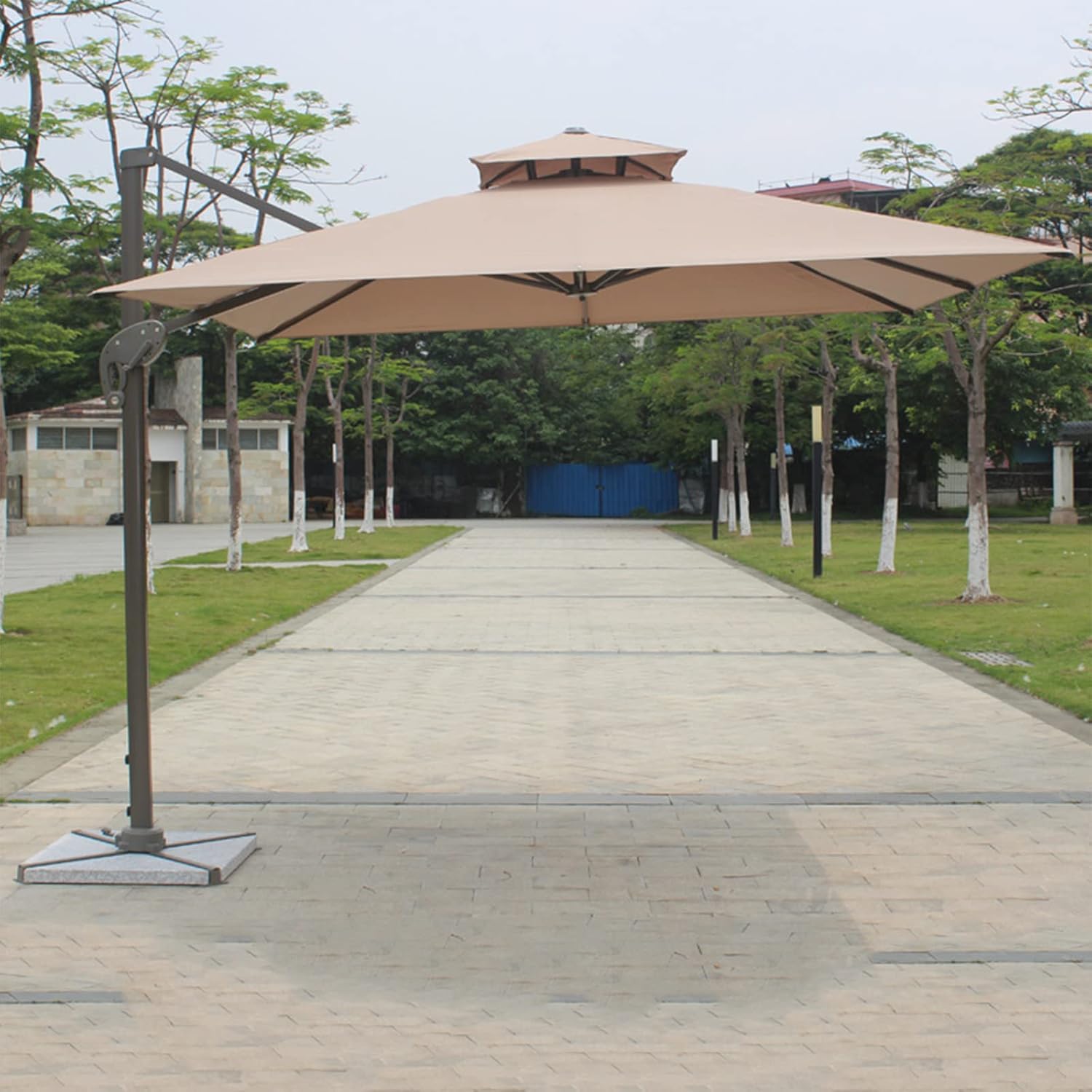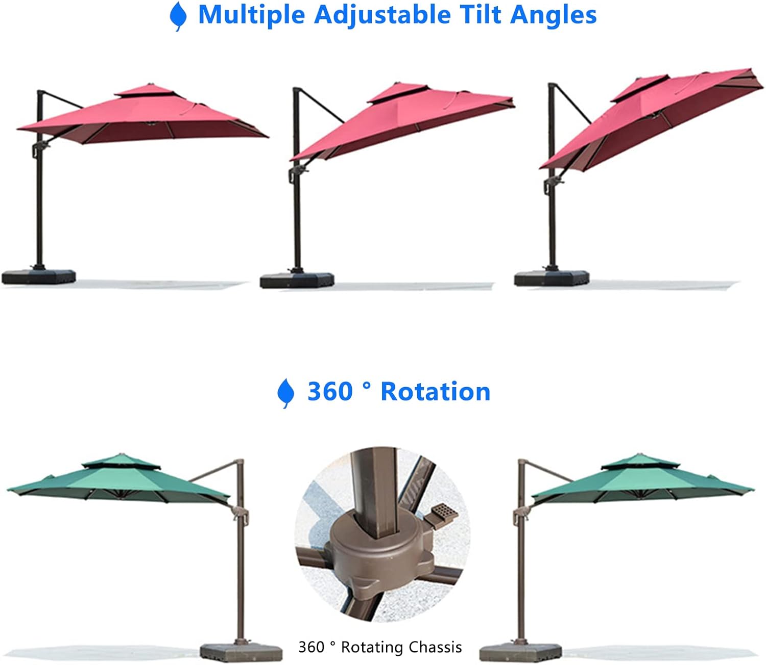 LOERSS 9.8FT Square Cantilever Patio Umbrella,Offset Hanging Umbrella,Outdoor Cantilever Umbrella,Double Top Roating Outdoor Offset Umbrella,Heavy Duty Sun Umbrella