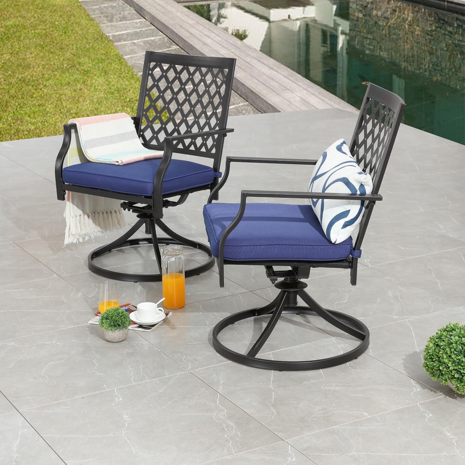 LOKATSE HOME Patio Swivel Rocker Furniture Metal Outdoor Dining Chairs with Cushion Set of 2, 2 chairs-blue, 2 chairs-blue