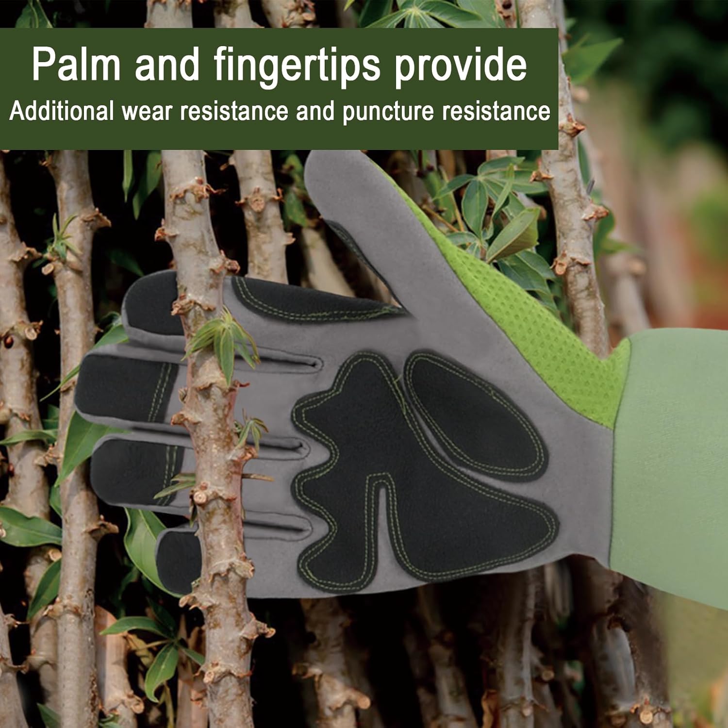 1. The back of the gardening gloves women long sleeves is made of breathable and sweat-absorbent fabric and puncture-proof and waterproof leather, which can keep your hands comfortable while working and complete all the work in the garden easily.