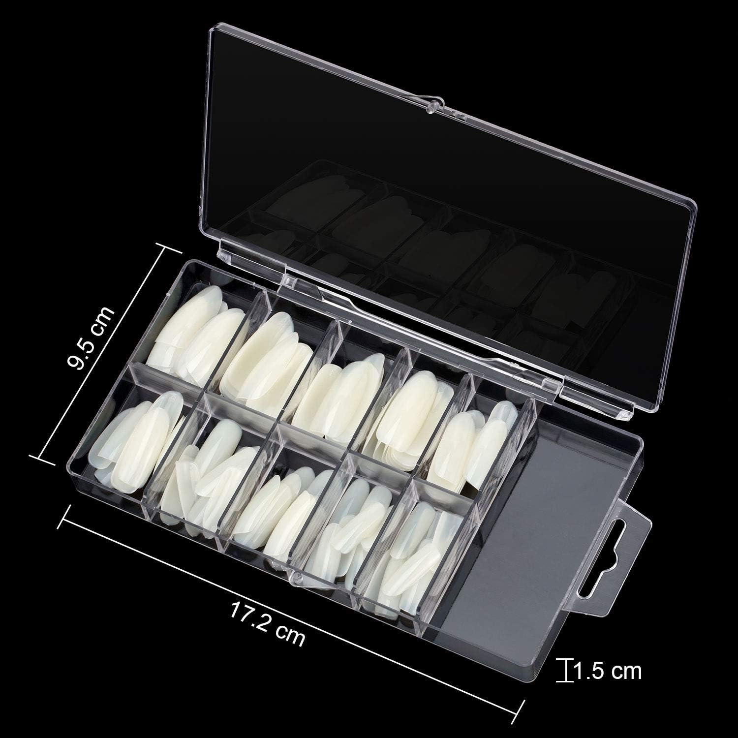 Long Oval Nails Natural False Nails with 100 Pieces Full Cover Artificial Acrylic Nails Fake Nail Tips for Girl Lady Woman Home DIY and Salon,10 Sizes