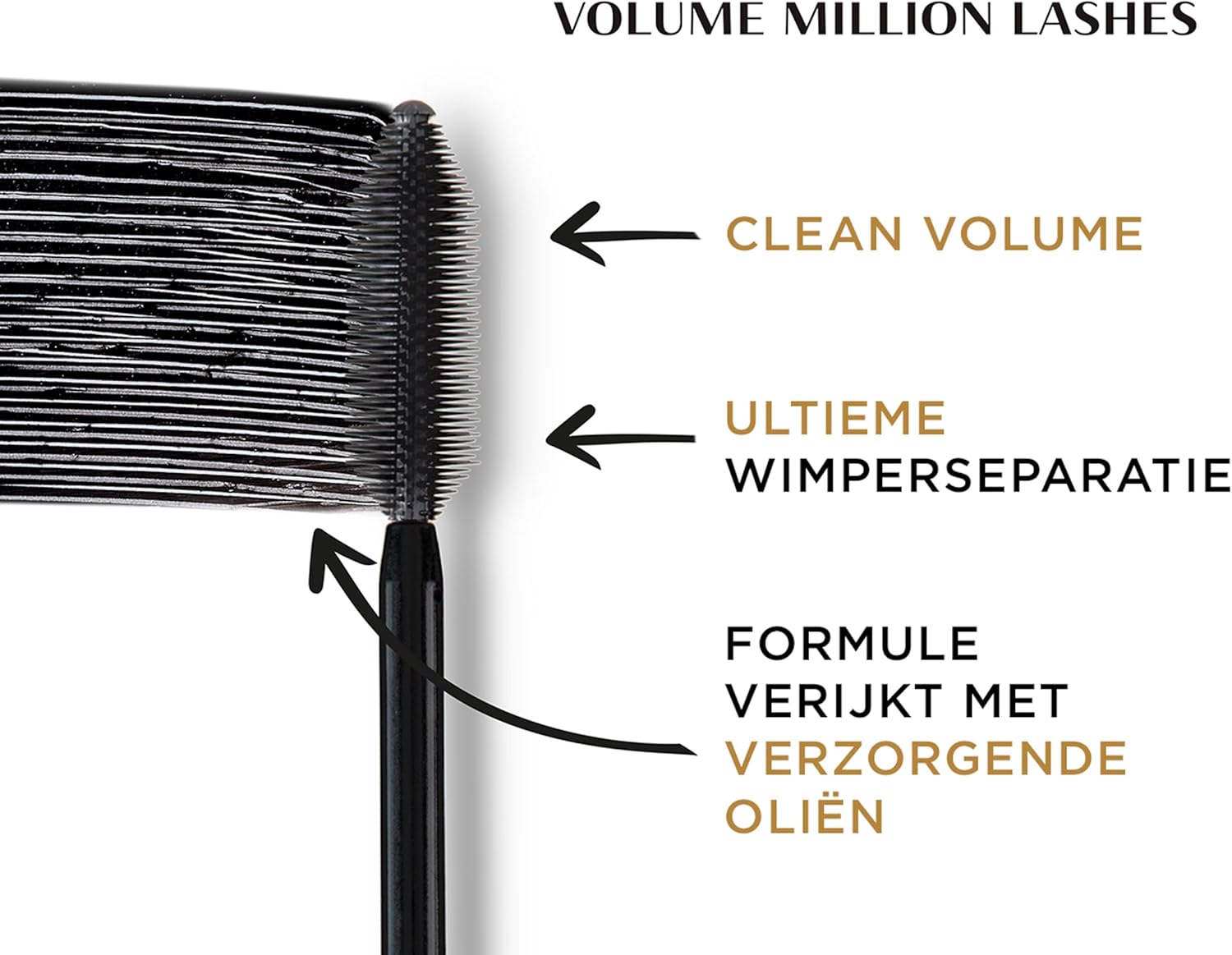 (as of [price_update_date] – DetailsMillionize your lashes with L’Oréal Paris Volume Million Lashes Black 9 ml mascara. The millionizer brush has a multitude of bristles which separate lashes for a fanned-out effect. The elastomer applicator is ultra flexible with both long and short bristles to coat lashes. The excess wiper removes excess mascara with no overload and no clumps. It leaves the brush coated with just the right amount of formula to achieve a volumized appearance with no overload and no clumps. Ambient type storage.