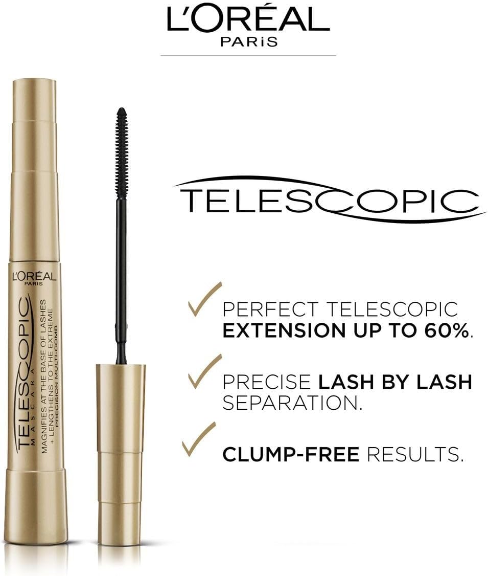 Contents: 1x L’Oréal Paris Telescopic Mascara Magnetic Black, Precise Application for Up to 60% Longer Looking Lashes, Colour: Black