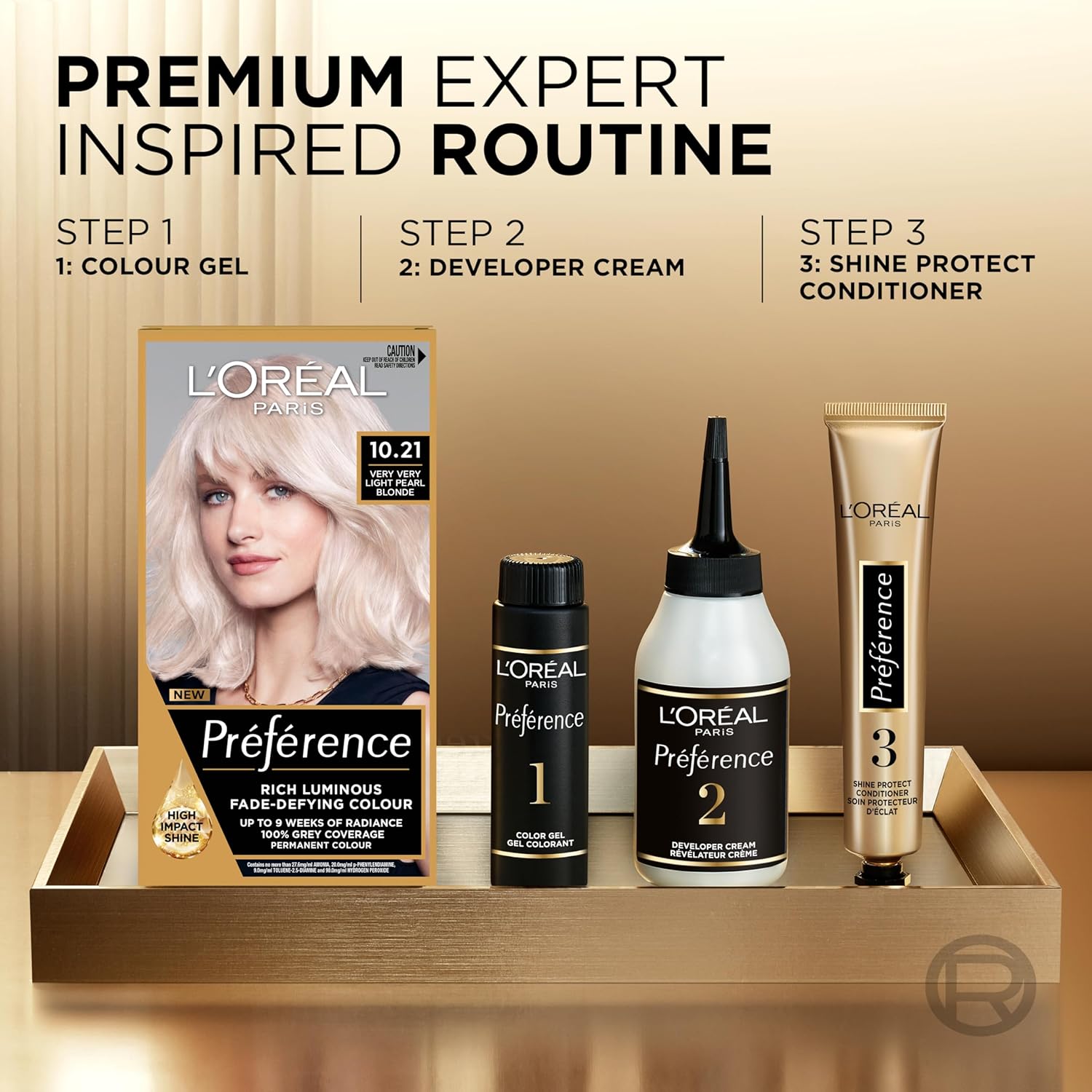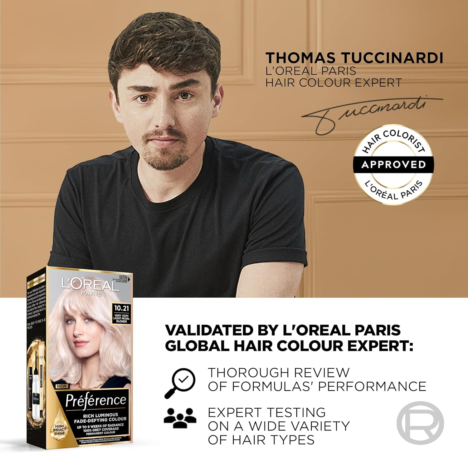 L’Oreal Paris Preference Hair Dye, Long Lasting, Luminous Permanent Hair Colour, 10.21, Stockholm