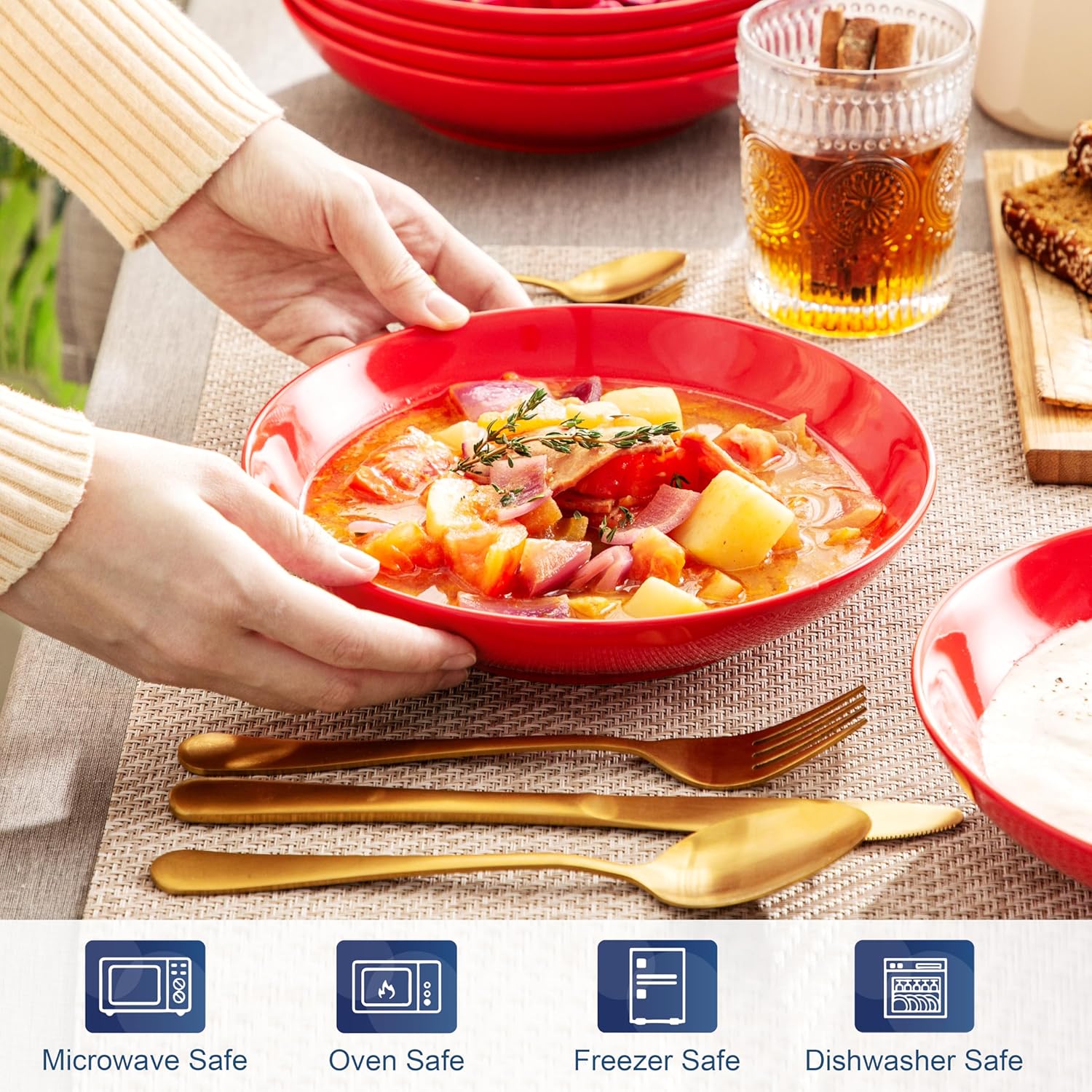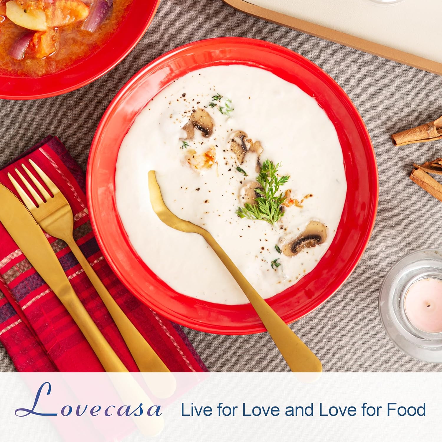 LOVECASA, Series Sweet, Soup Plates Porcelain Deep Dinner Plate Soup Snack Plate, for 6 People Red