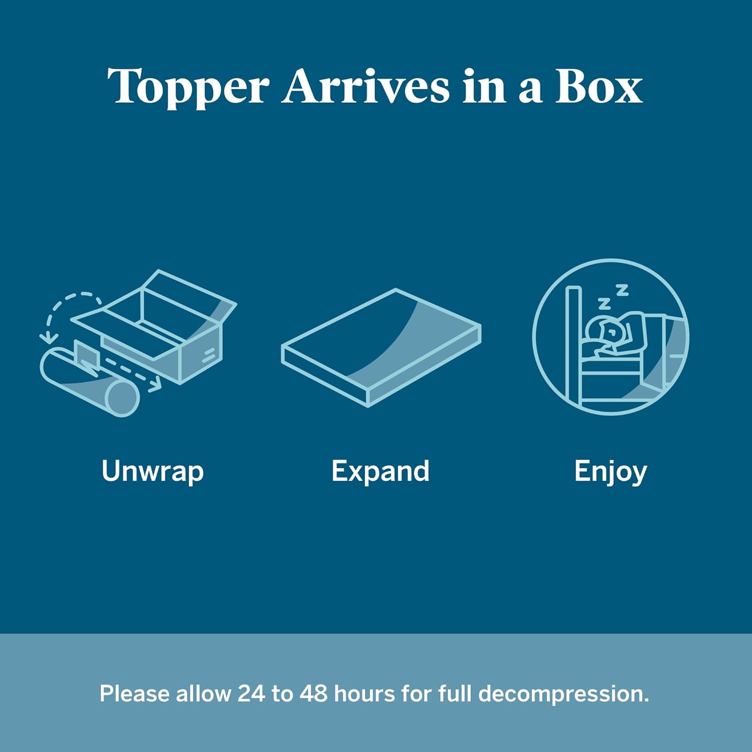 Lucid mattress toppers are compressed, rolled, and shipped in an easy-to-manage box for convenient shipping and simple setup