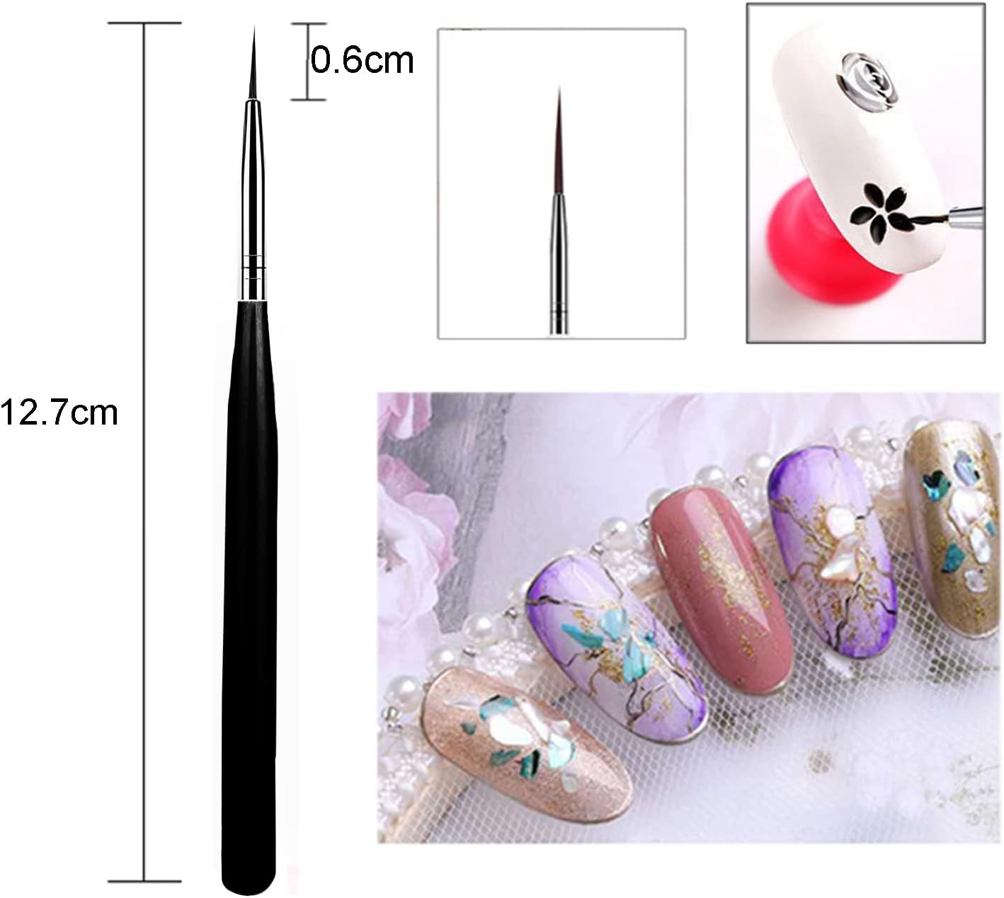 This nail design brushes includes 3 Pcs nail liner brush pens with 3 different sizes—- 5mm, 7mm, 10mm. Ideal for drawing lines & fine drawing on nail tips, making your nails more elegant and charming.