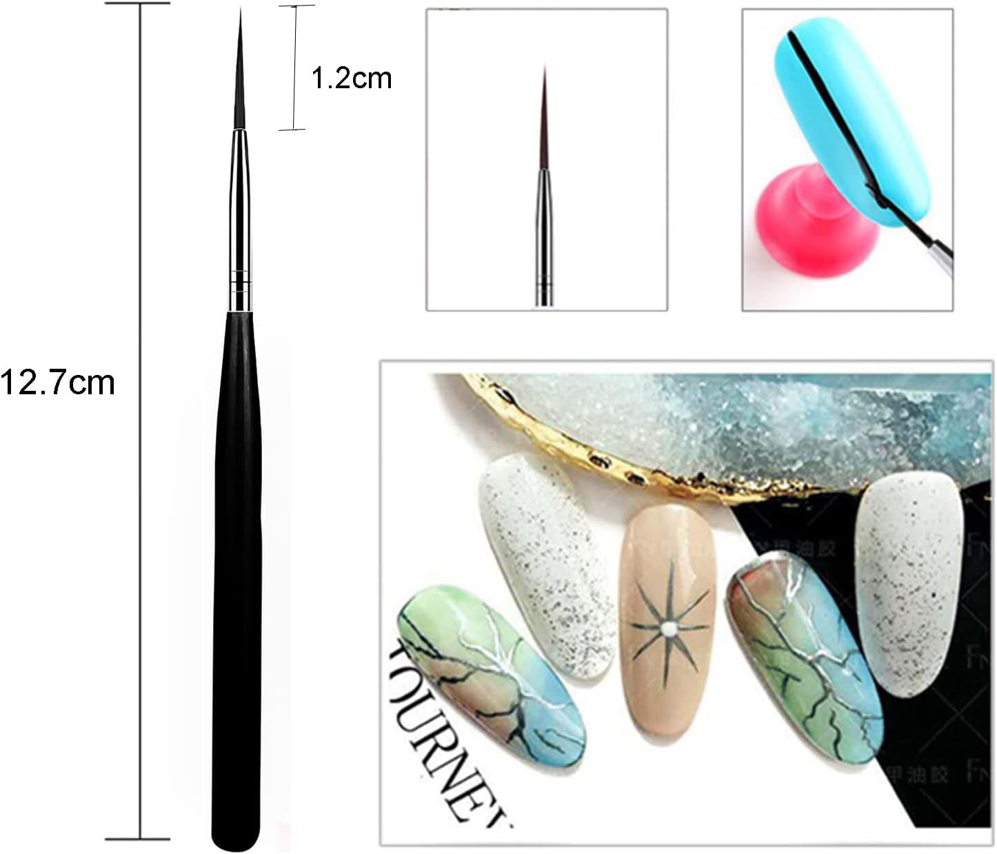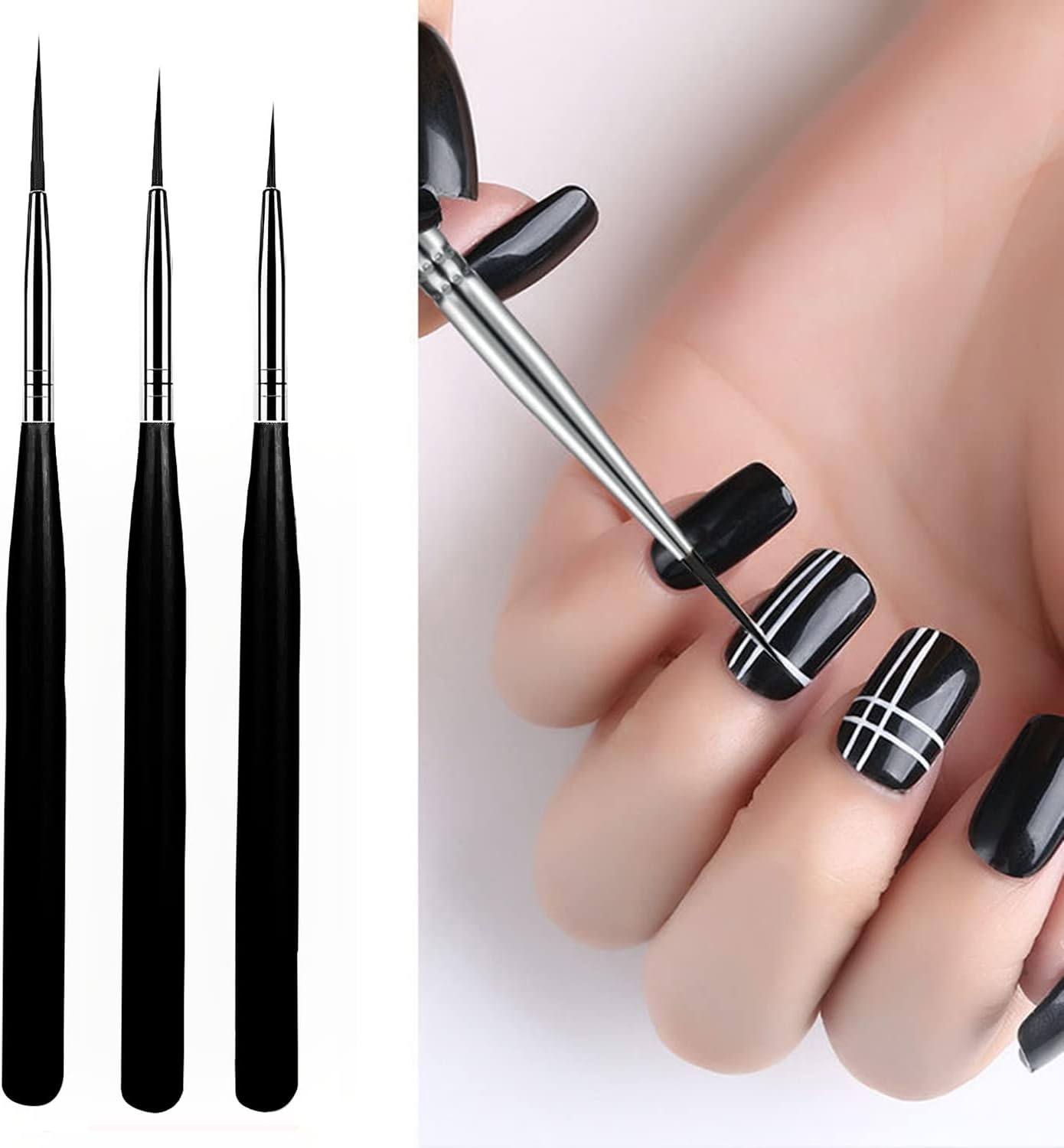 luoshaPUCY 3Pcs Nail Art Liner Brushes, Nail Liner Striping Brush Nail Brushes for Nail Art Fine Designs UV Gel Polish Painting Striper Brushes, Black