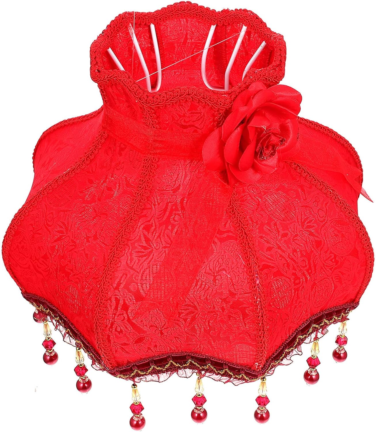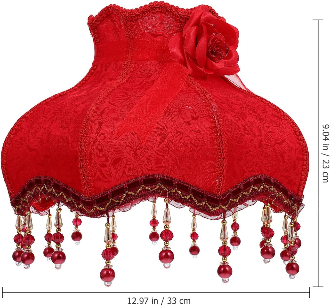 Lurrose European Style Fabric Lampshade E27 Cloth Lace Lamp Shade with Beads Vintage Chandelier Lamp Shades for Table Wall Lamp Living Room, Red