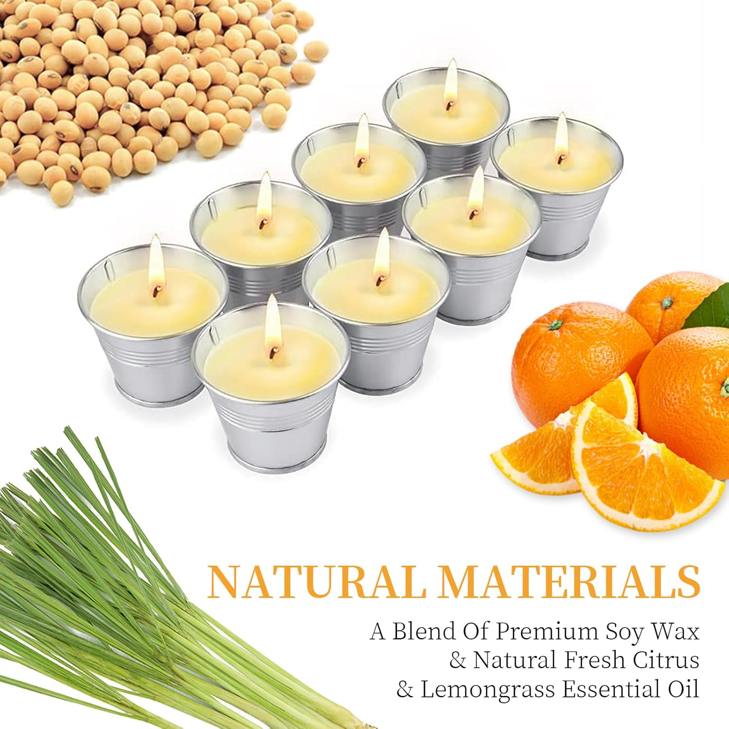Lustwieta Citronella Candles Outdoor Set 8 x 2oz, 120 Hours Garden Citronella Candles Tea Lights Set, 100% Natural Soy Wax Scented Candles for Outdoor, Indoor, Camping, Outside, Garden (8)
