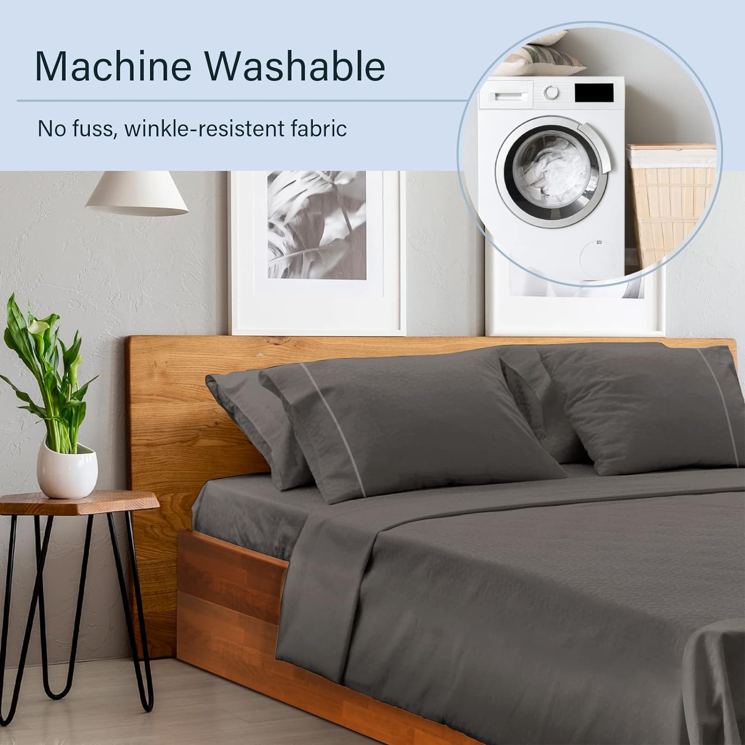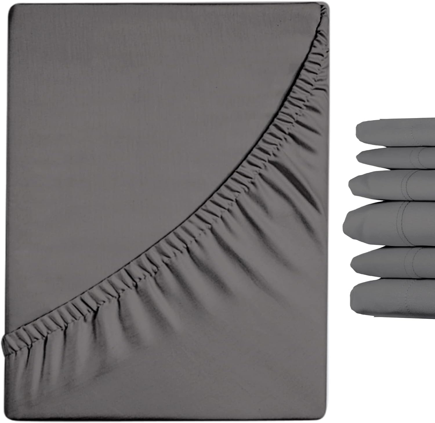 LuxClub Double Fitted Sheet Bedding with 45cm Depth, Extra Deep Soft Cooling Bed Sheets Microfiber Fabric Ease Care Soft & Comfortable Fade Resistant – Grey, Double