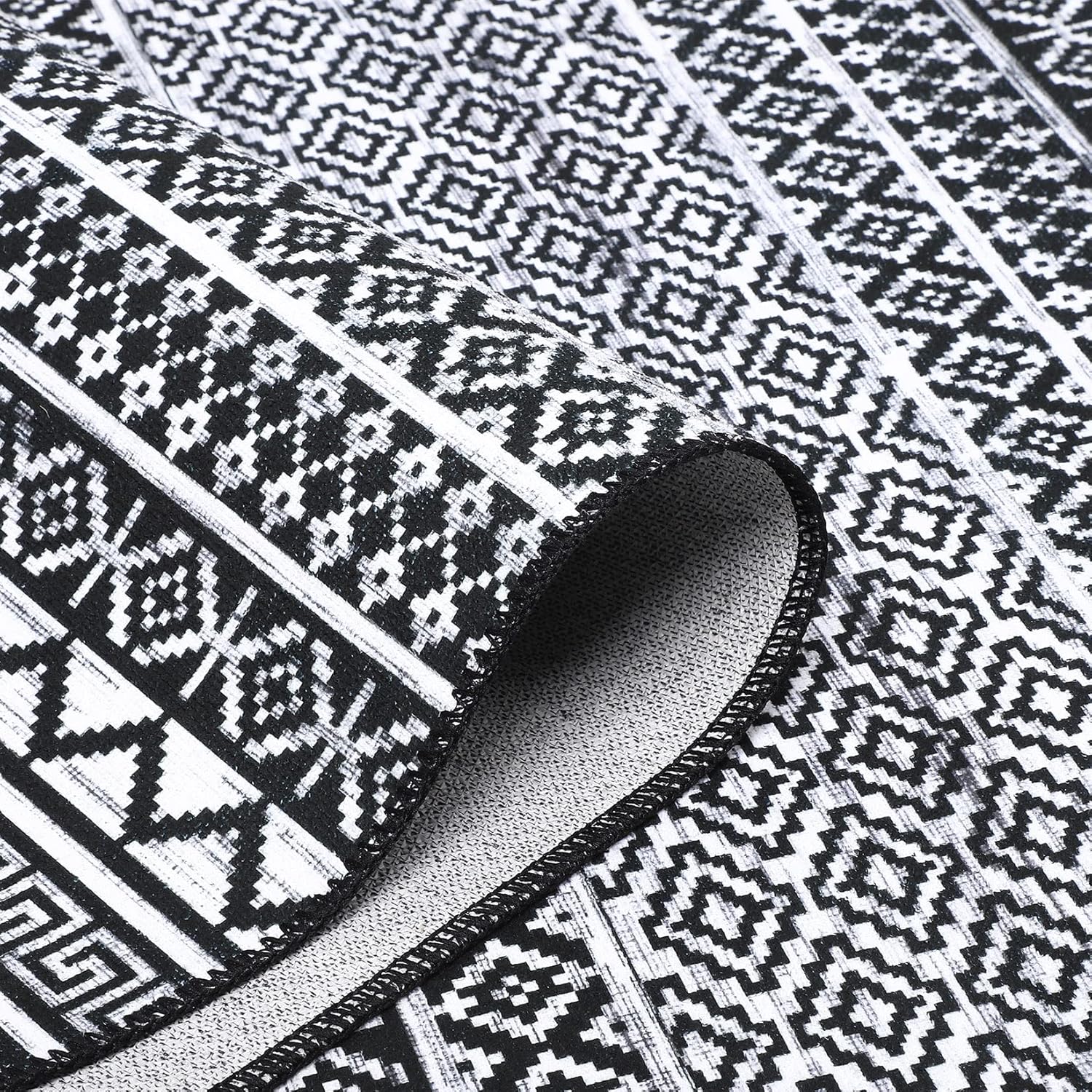 LuxFocus Machine Washable Rug, In & Outdoor Water Resistant Vintage Area Rug Non-Slip Short Pile With Modern Design Carpet for Bedroom Living Room Dining Room Kitchen, 120 x 170 cm Black